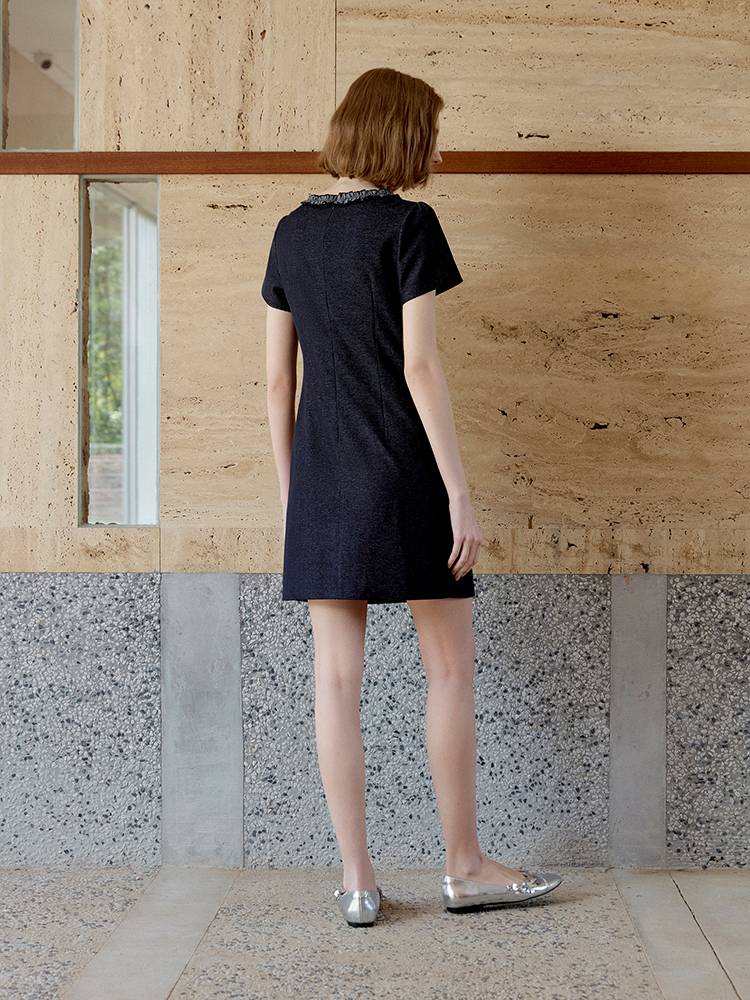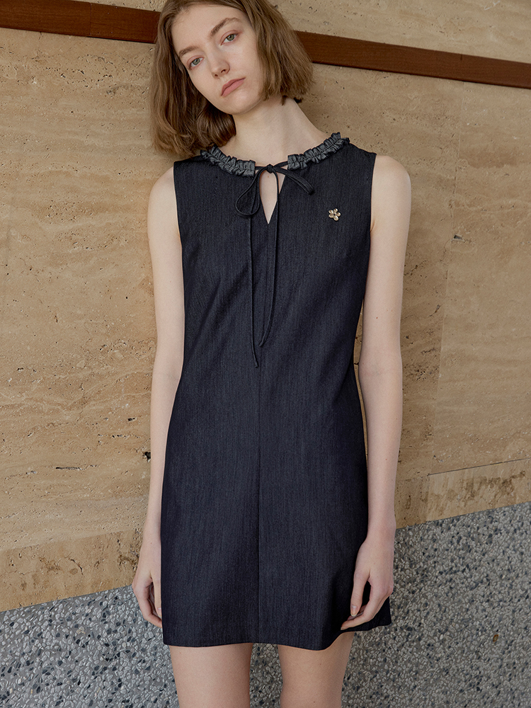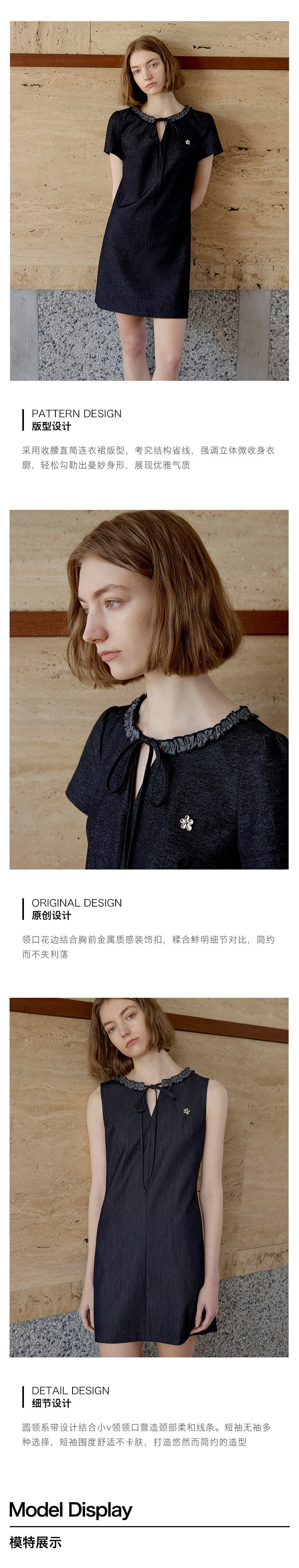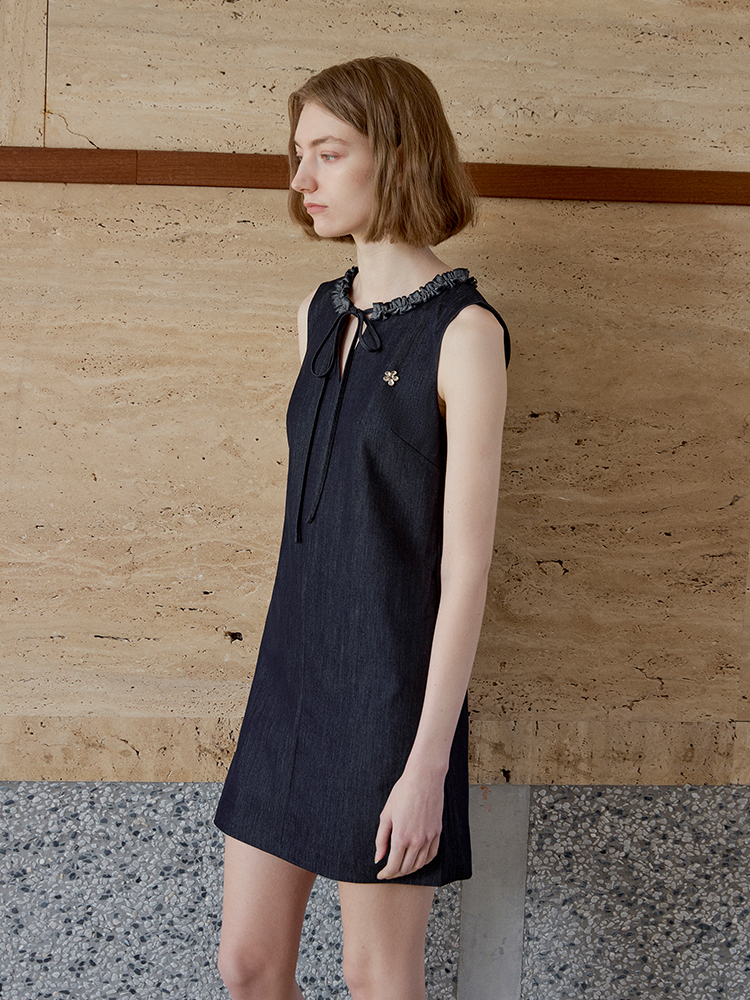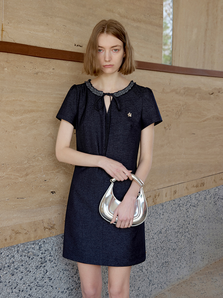 ForPoem 现货 25/SS原创设计牛仔肌理收腰显瘦花边绑带连衣裙