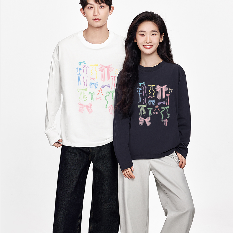 「棉的美学」230g重磅长袖打底T恤小众设计感蝴蝶结印花休闲上衣