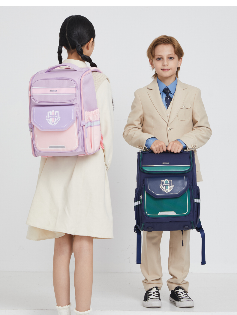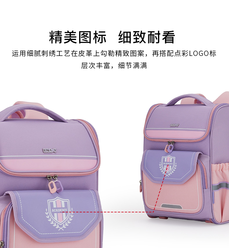 接下来讲讲孩子最关心的,大概是书包的颜值了!这款书包板正硬挺,大大方方的,一点都不扁塌。
