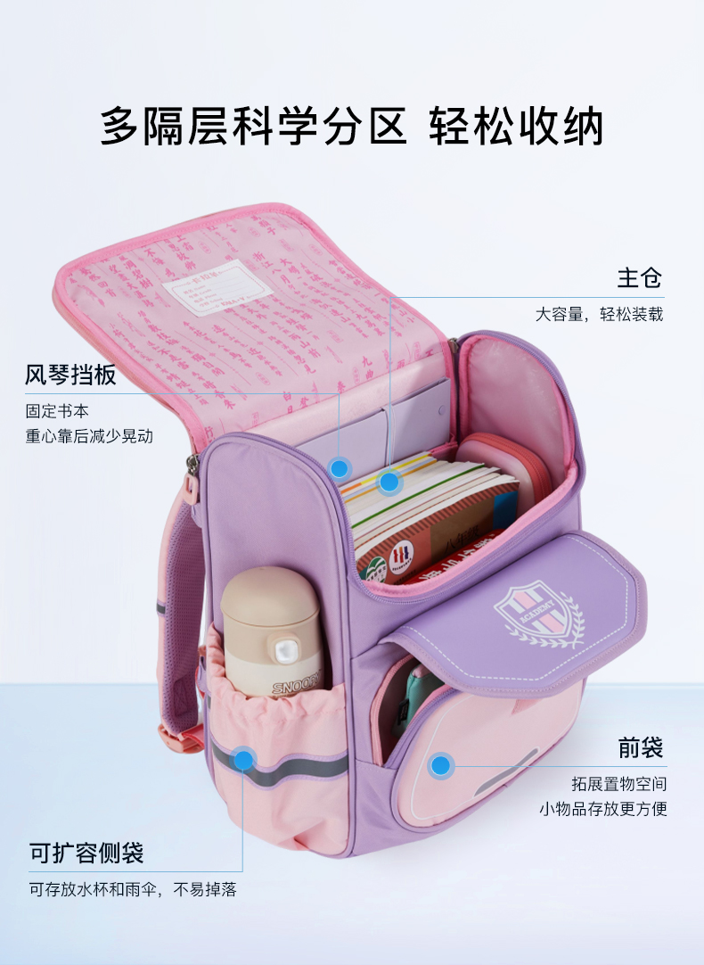 关键是,书包内置风琴式分层收纳,娃的试卷、纸张作业就能很好保存,下次拿出来再也不是破碎、卷边纸片了!