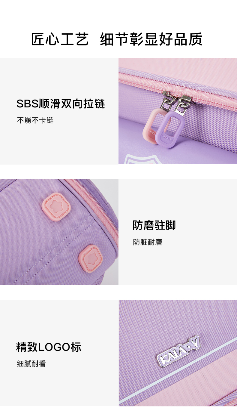 可上下调节的胸扣,可是卡拉羊书包的“定海神针”呢!这个小设计可以根据不同娃的身高、身材需求,进行调节,稳稳地固定住书包。