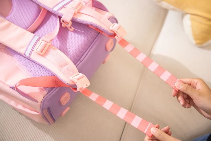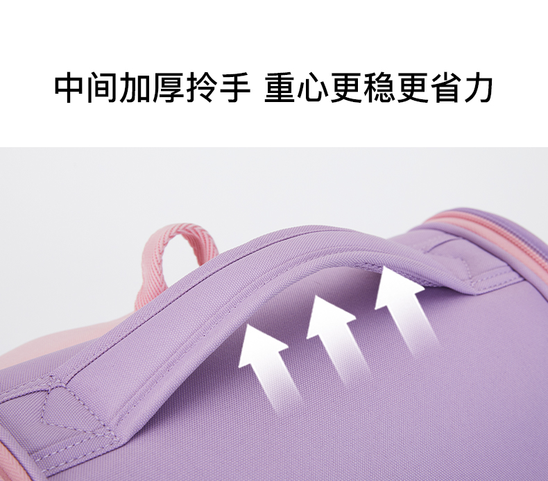 织带上还加上了一个止滑扣,将织带长度牢牢地锁定,书包再重,肩带也不会滑脱下坠