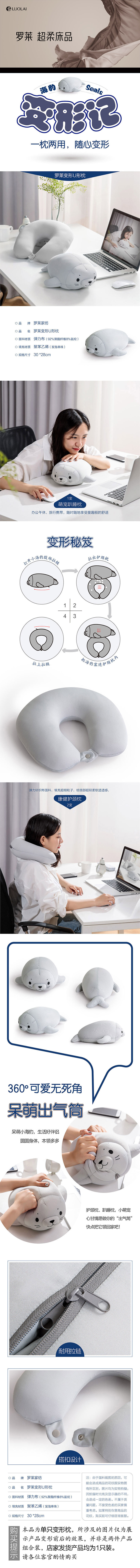 罗莱T 海豹变形U形枕X 灰色