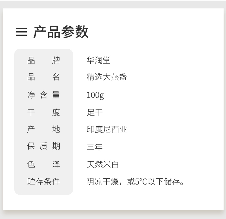 【P】华润堂 燕窝(白燕盏)印尼燕窝 100克