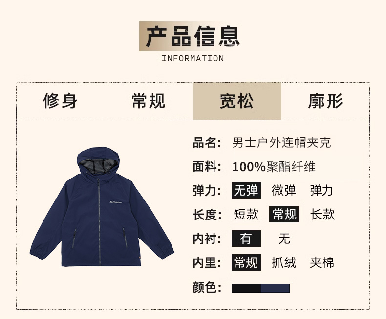 Dickies男士连帽夹克休闲百搭外套男字母LOGO纯色外套 DK0A87FD