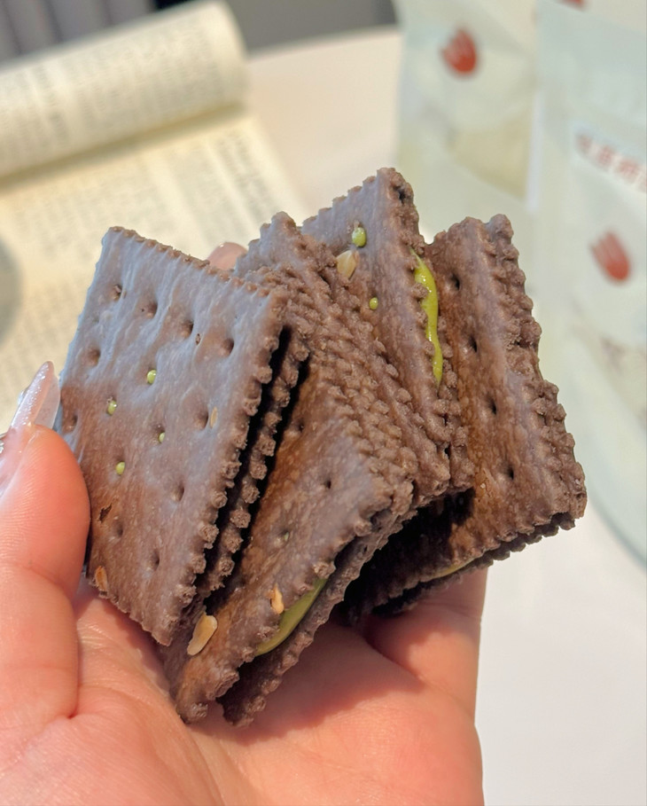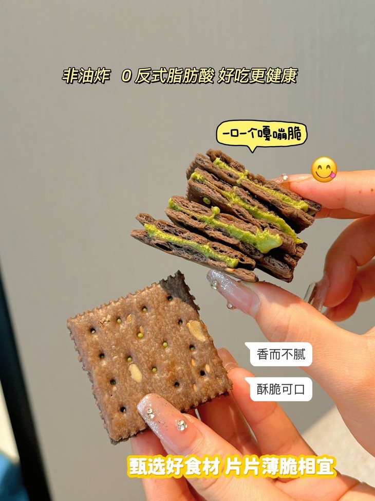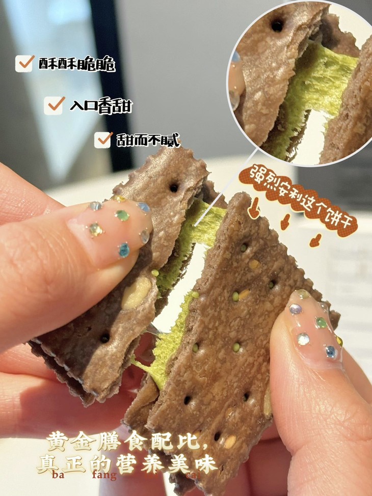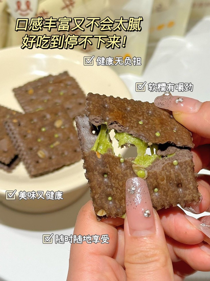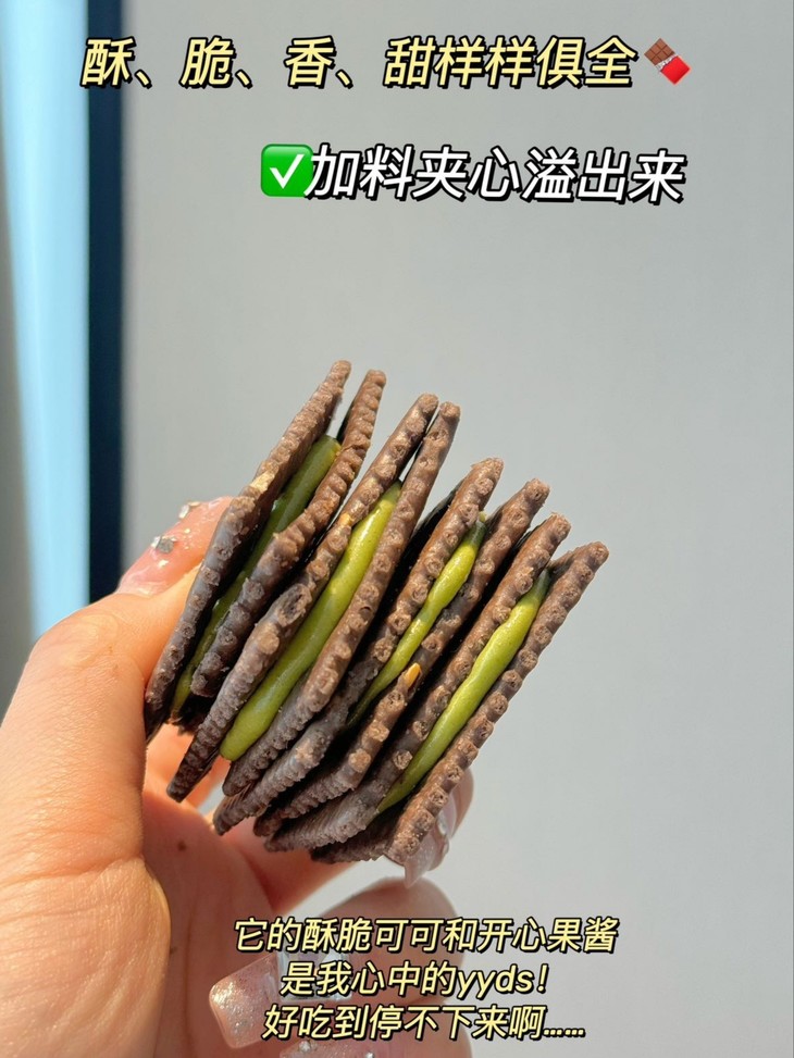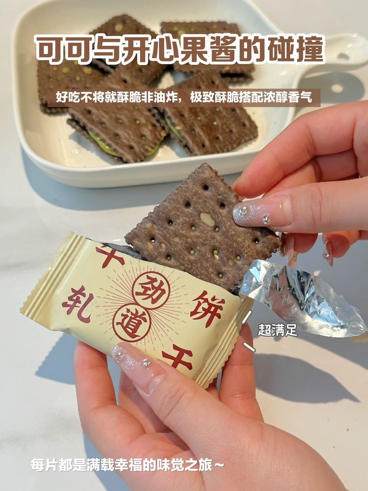 真是给姐妹们挖到宝了 开心果酱牛轧好香好好吃 像手工现做的棉花糖一样 柔软又有点韧性☁️ 一口咬下,麦香、奶香、甜香在嘴里散开~ 这饼干真的吃多少都不会腻呀!很上头🥰 开心果酱牛轧糖的软糯➕可可饼干的酥脆交织 奶香搭配麦香都快溢出来了 口感丰富 有层次感 甜度刚刚好 吃一次就被狠狠拿捏好吧🤤