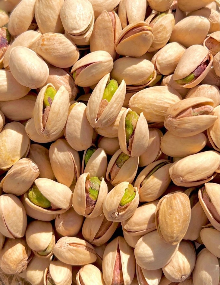 来自新疆的开心果 作为开心果酱牛轧饼干的原料✅ 只选取外壳自然开裂 露出饱满翠绿的果仁的开心果 我们坚持甄选品质上乘的新疆开心果👍 只为宝子们在吃每一口牛轧饼干中 都能感受到纯正 Tian然的美味🥺