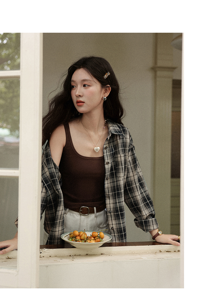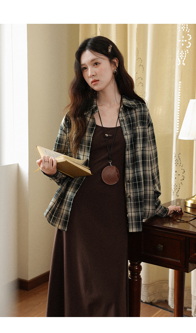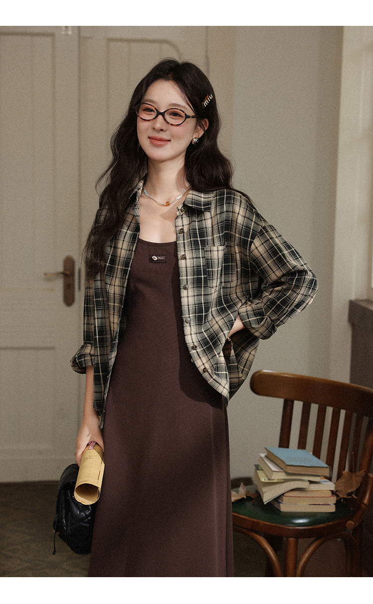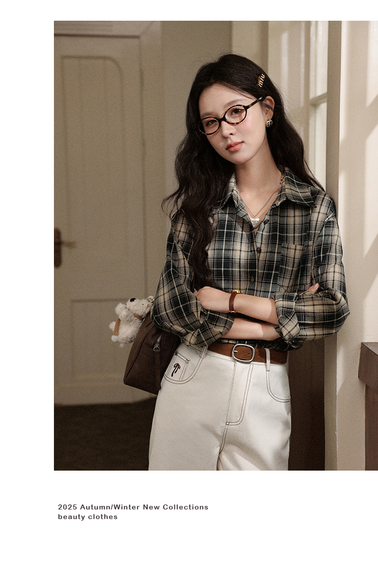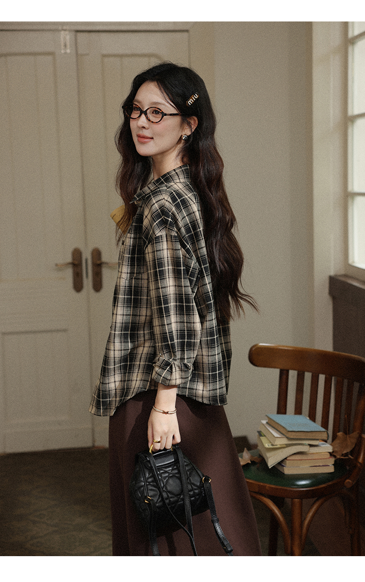 【6折秒杀】鹿向南「松茶可可」咖色格纹防晒衬衫女秋季新款高级法式长袖衬衣L56707