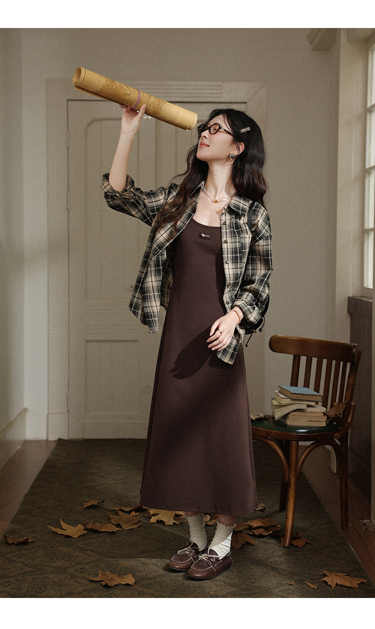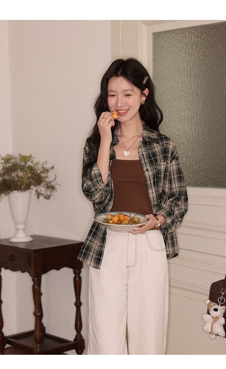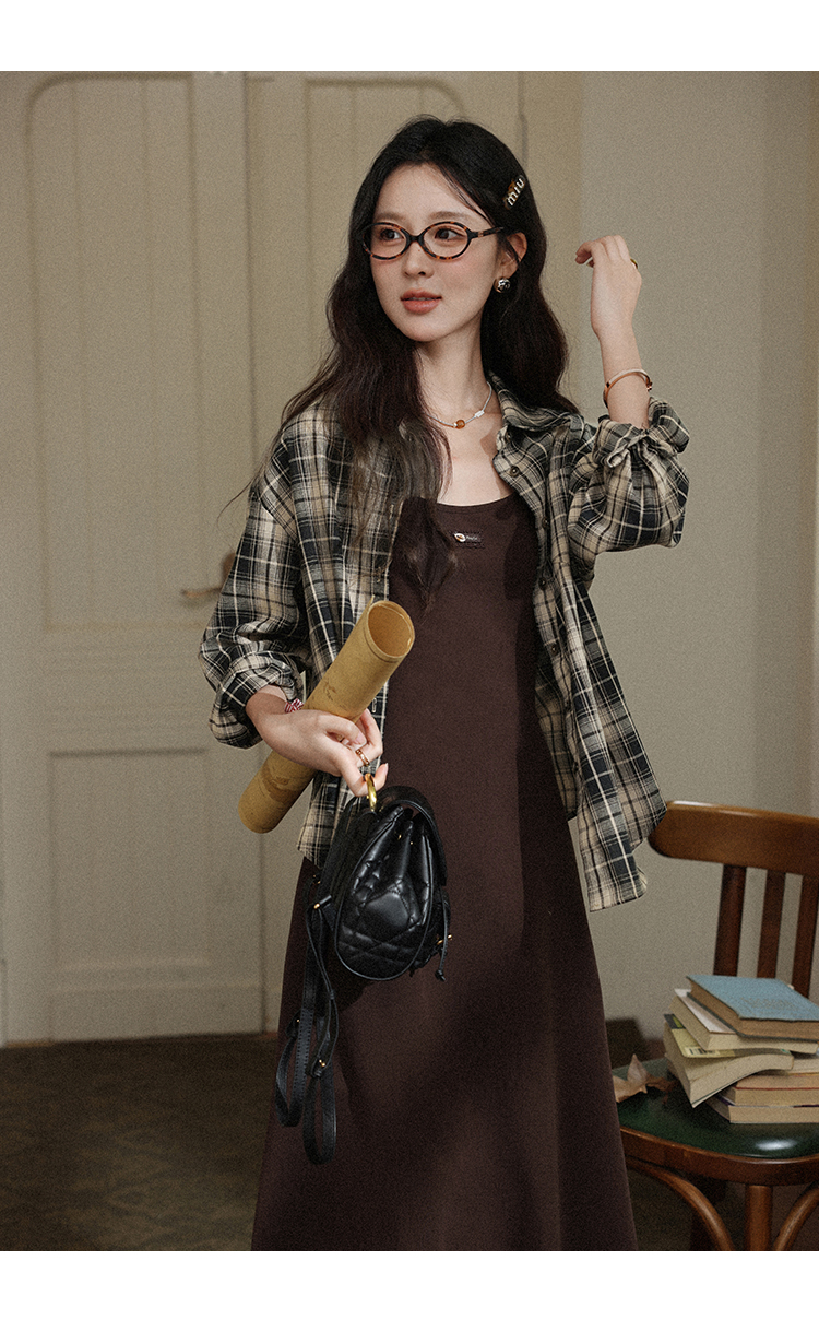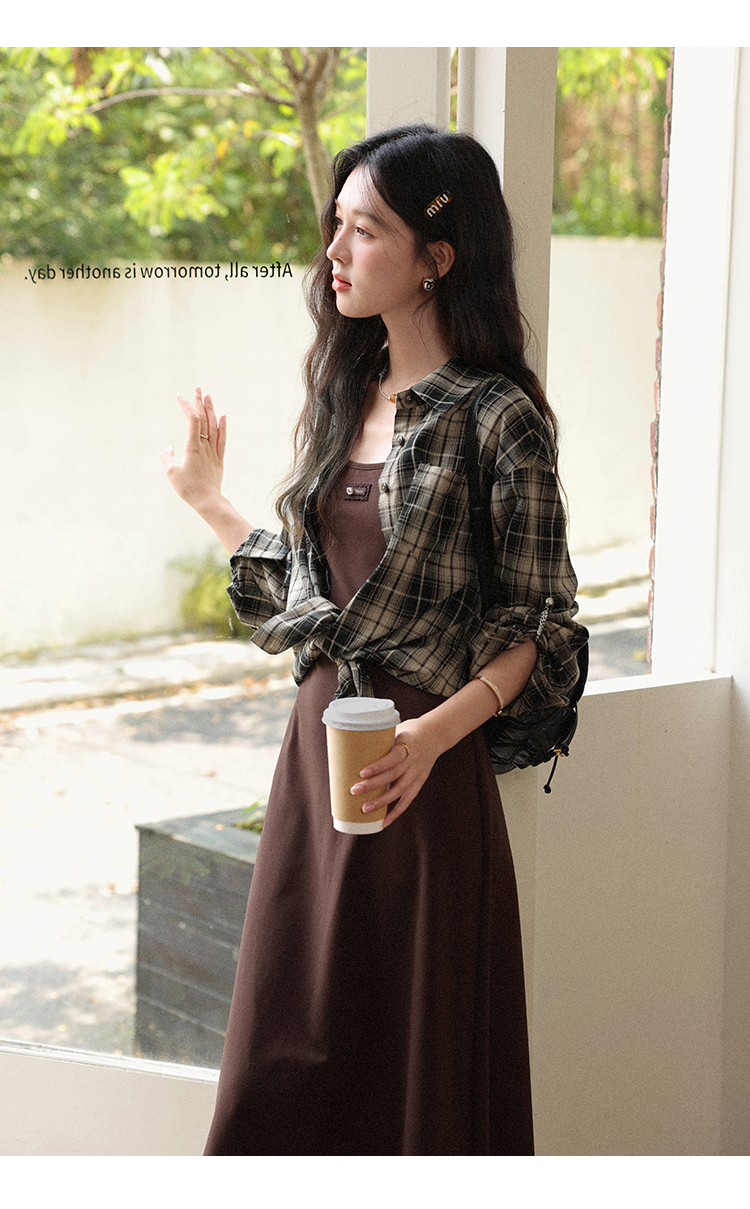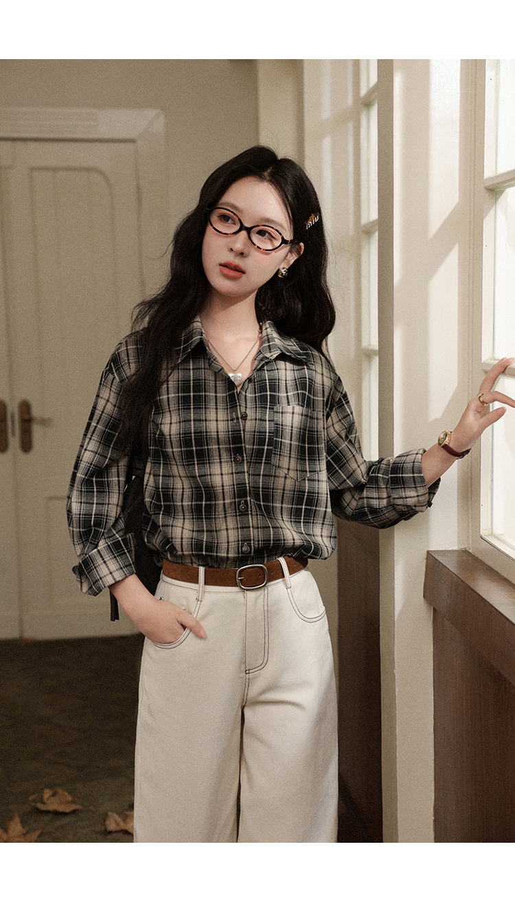 【6折秒杀】鹿向南「松茶可可」咖色格纹防晒衬衫女秋季新款高级法式长袖衬衣L56707