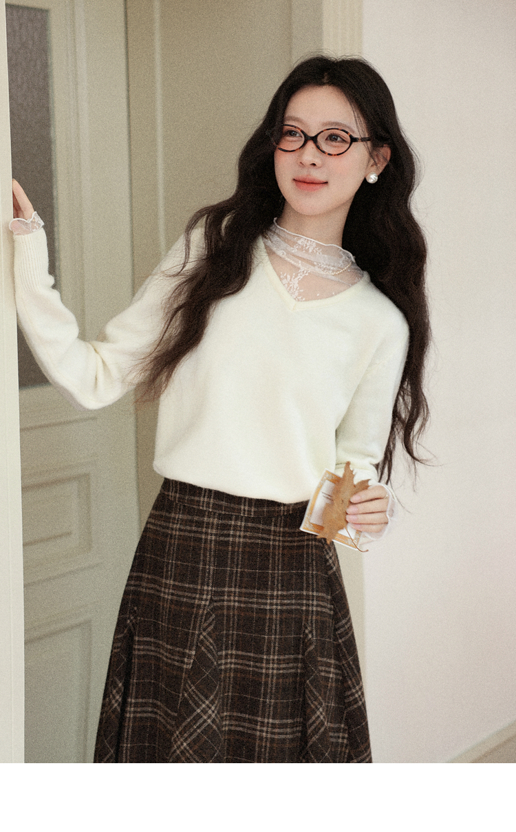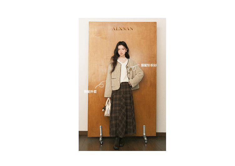 鹿向南「栗色信纸」不规则咖色格子半身裙女秋冬季显瘦A字长裙子