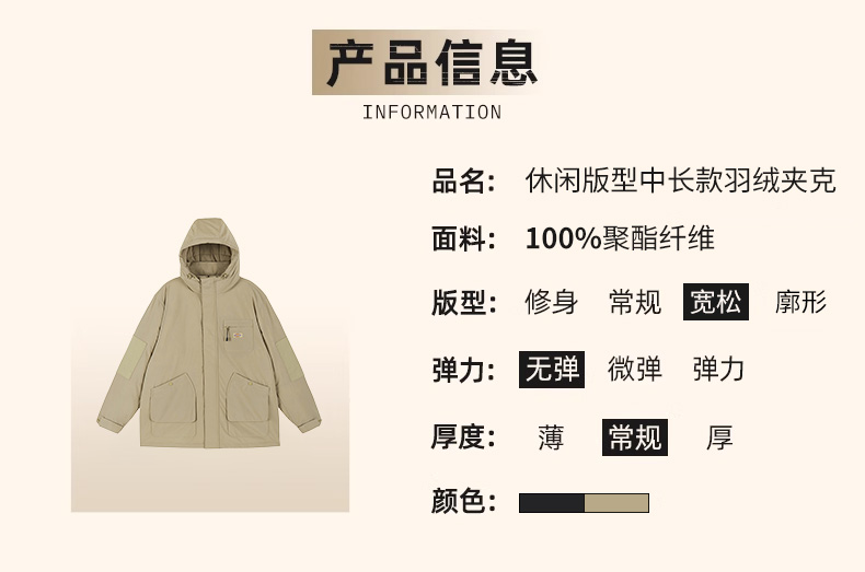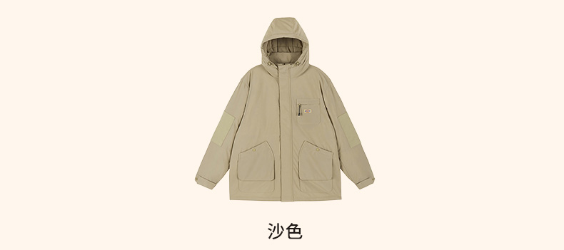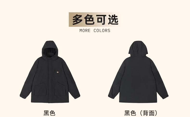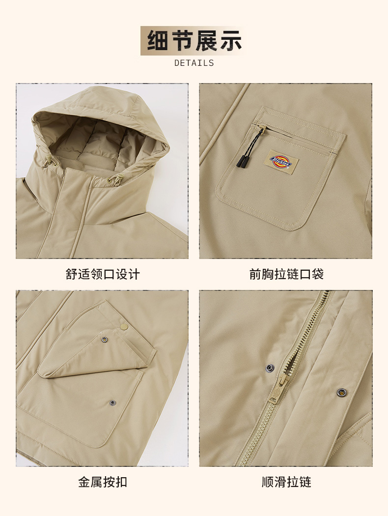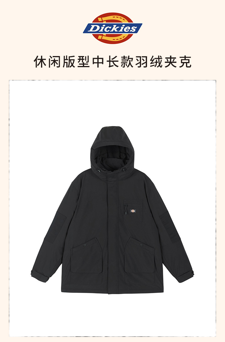 Dickies复古工装羽绒服男 前胸拉链口袋宽松连帽可调节厚外套 DK0A885Y