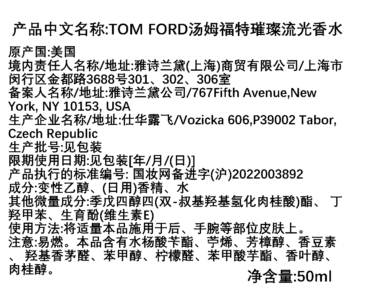 Tom ford汤姆福特/TF 璀璨流光/阳光琥珀香水