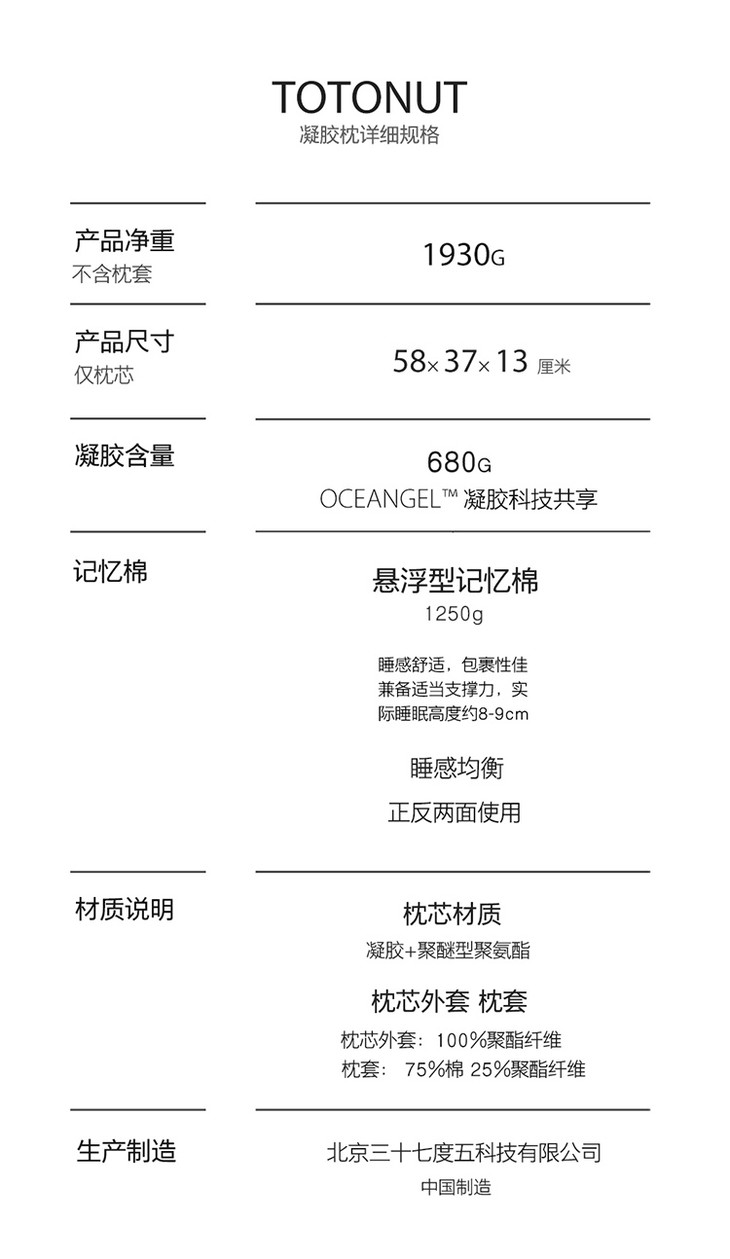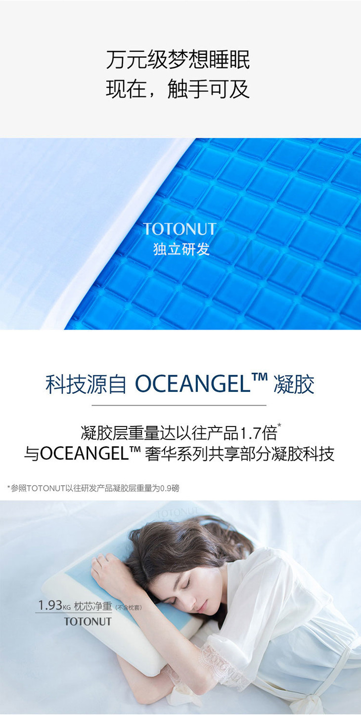 TOTONUT凝胶枕 | 慢回弹记忆棉 柔软支撑 舒适亲肤 降温冰枕 四季可用