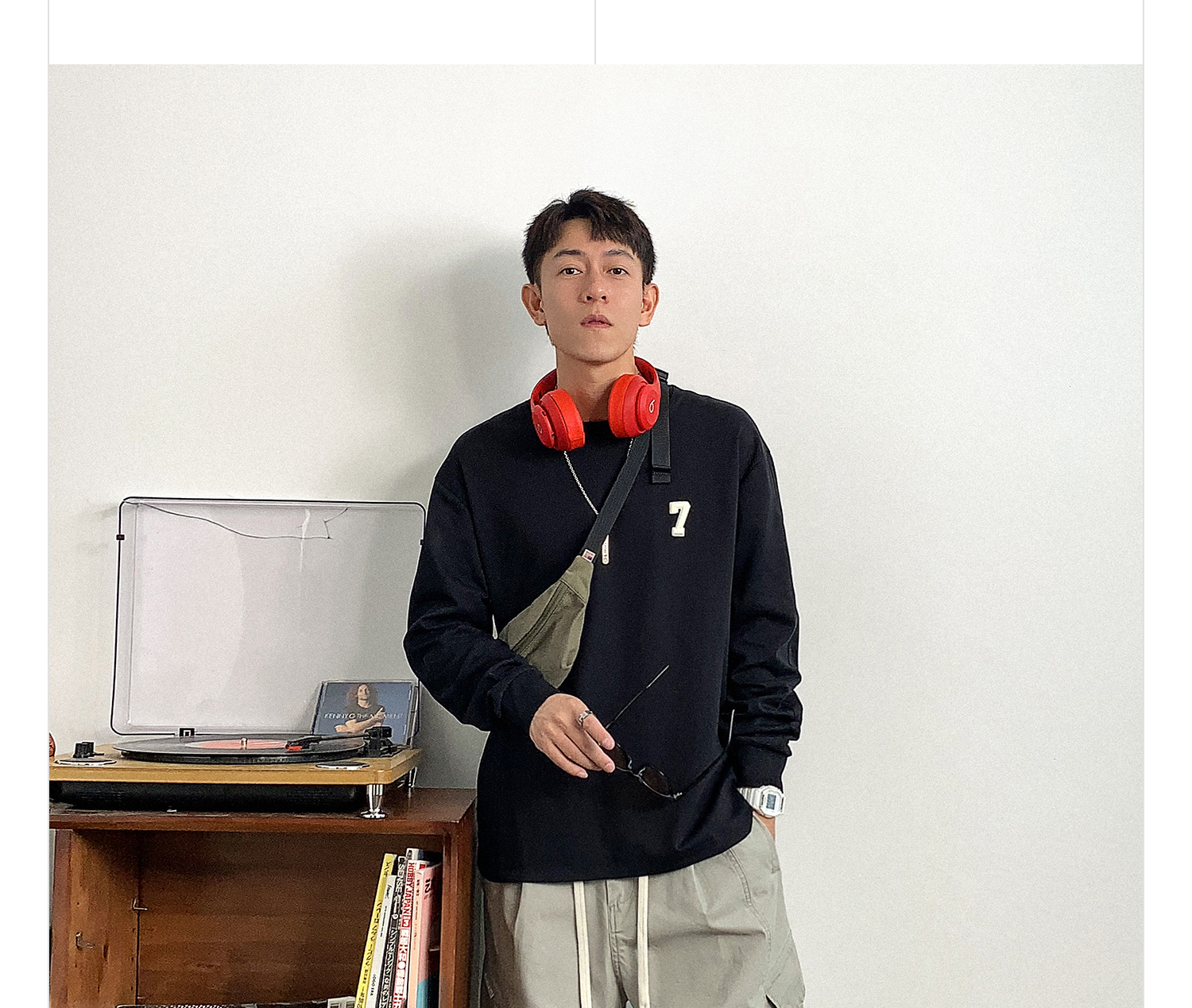 徐太浪美式刺绣字母印花圆领卫衣男春秋季潮牌高街拼接打底衫上衣