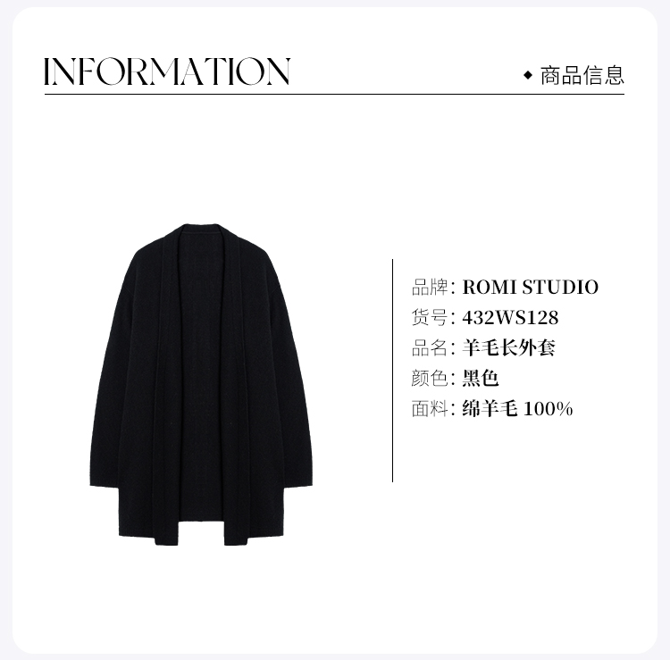 ROMI STUDIO“松弛高知”7针单边*绵羊毛软糯长开衫 432WS128