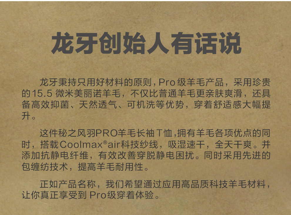 【龙牙上新】二代龙牙秘之风羽PRO美丽诺羊毛长袖T恤