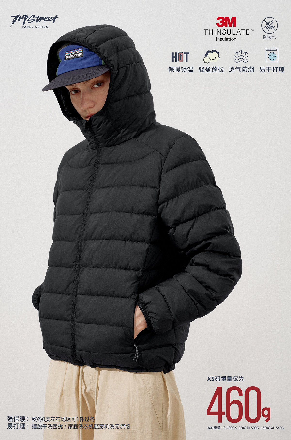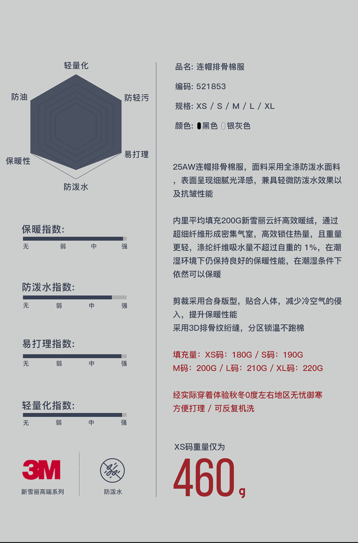 714street3M新雪丽暖绒排骨棉服男2025秋冬新款防水连帽情侣外套