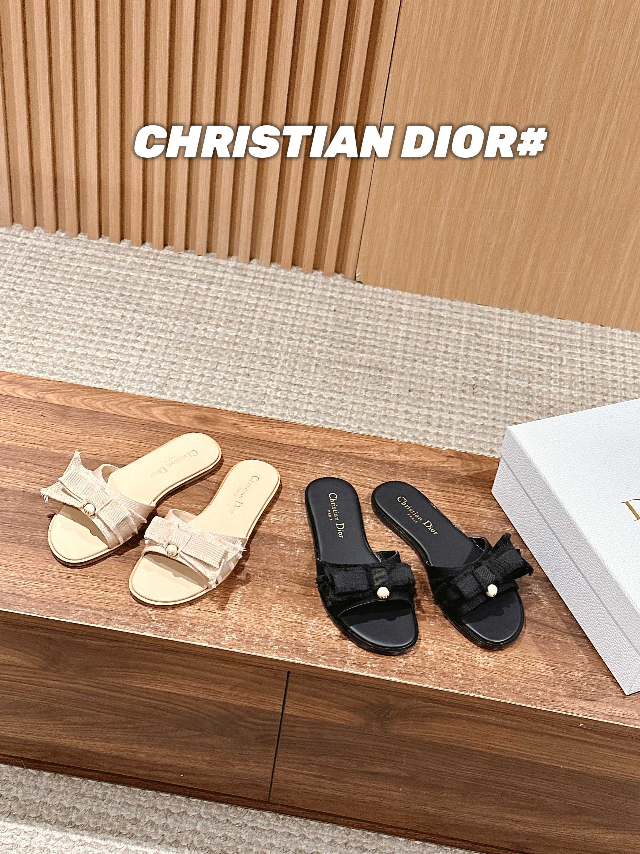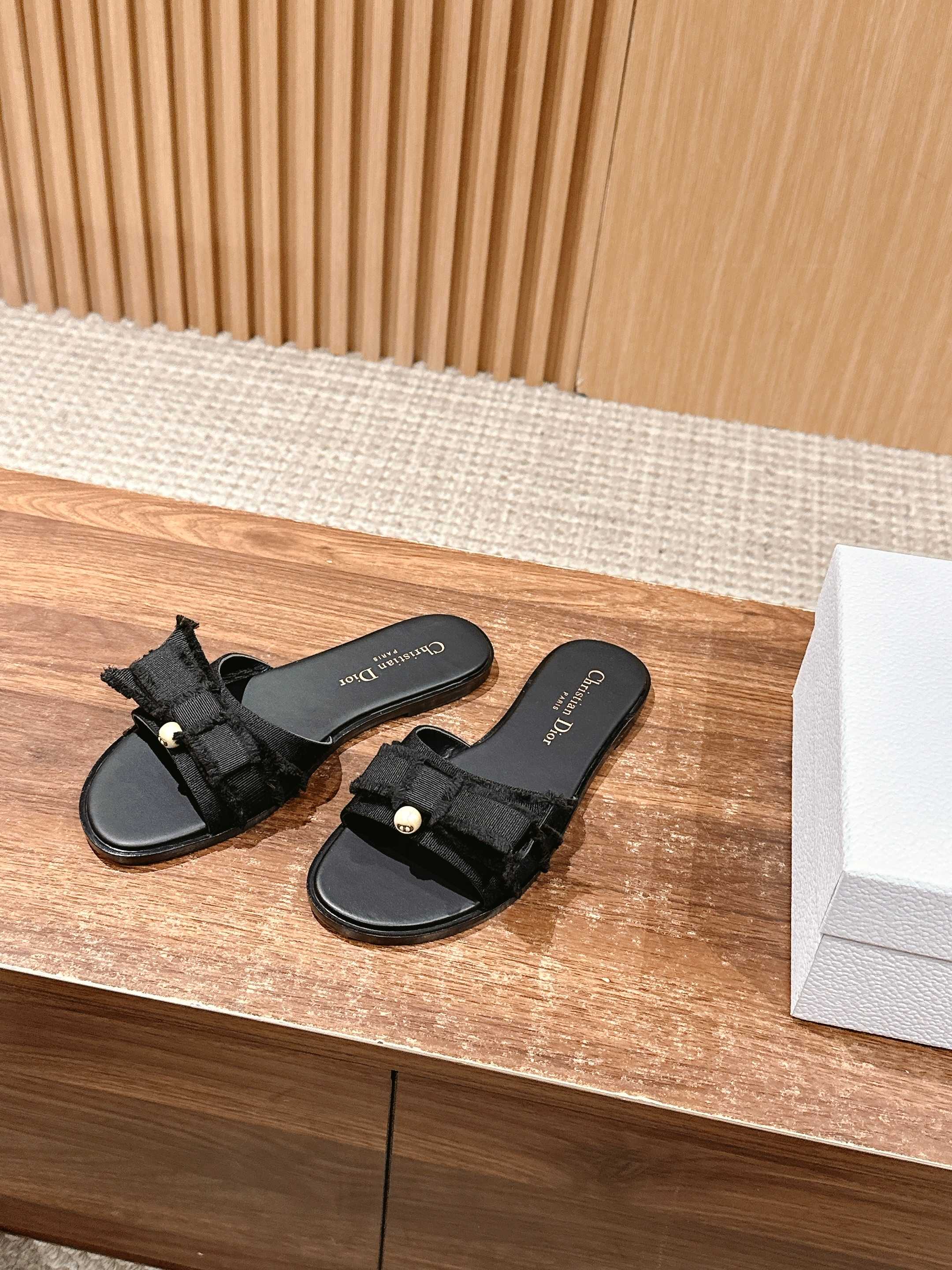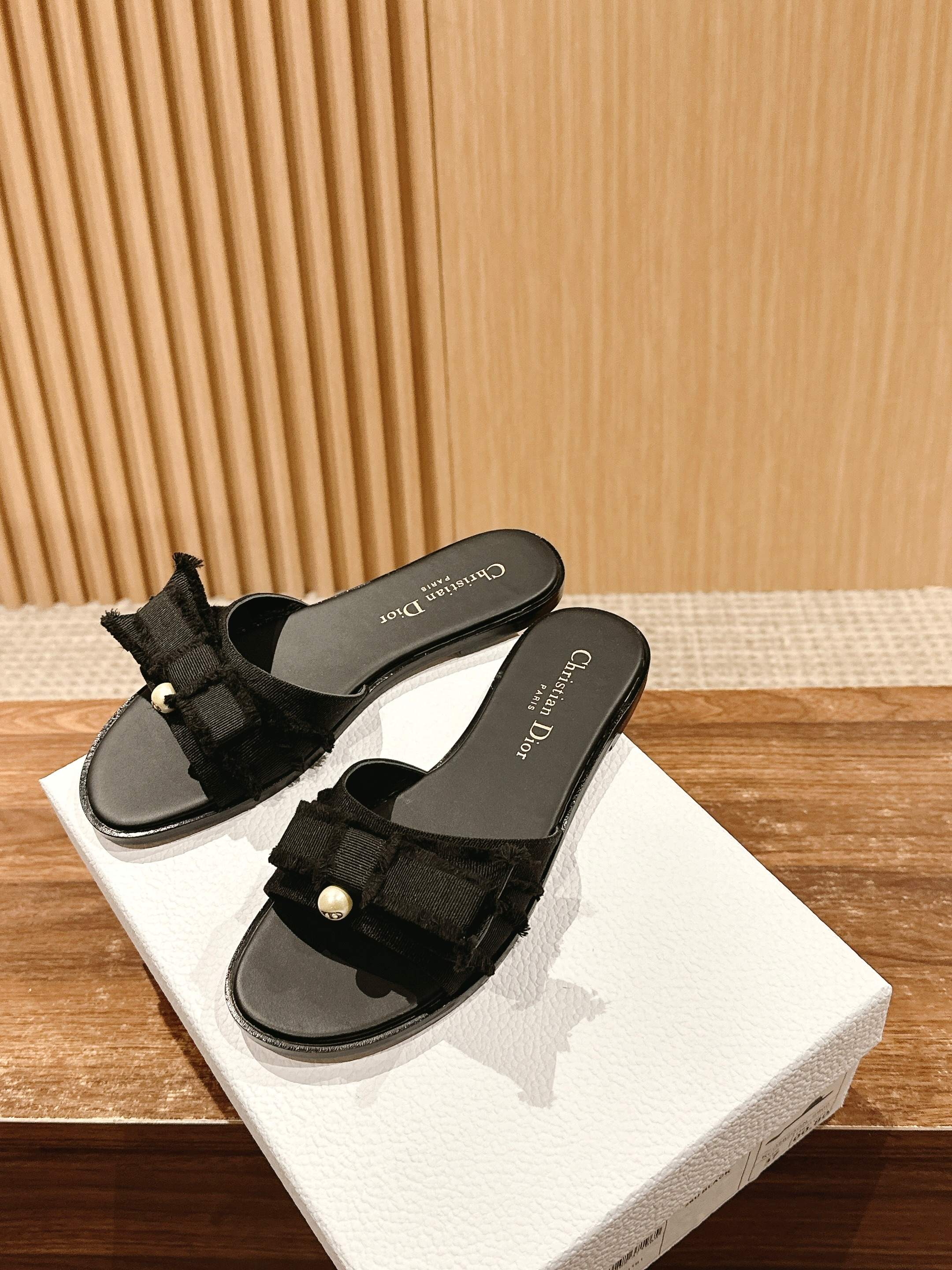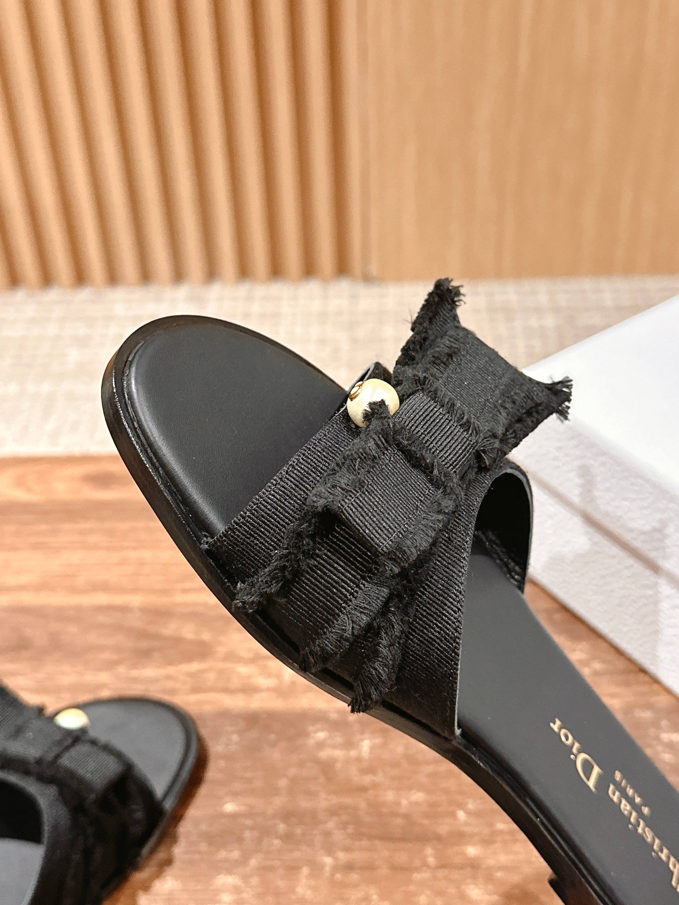 𝐂𝐇𝐑𝐈𝐒𝐓𝐈𝐀𝐍 𝐃𝐈𝐎𝐑# 迪奥新款珍珠蝴蝶拖鞋 黑色流苏罗缎鞋面尽显时尚格调 点缀以白色珠饰及蝴蝶结为摩登造型增添高雅气质