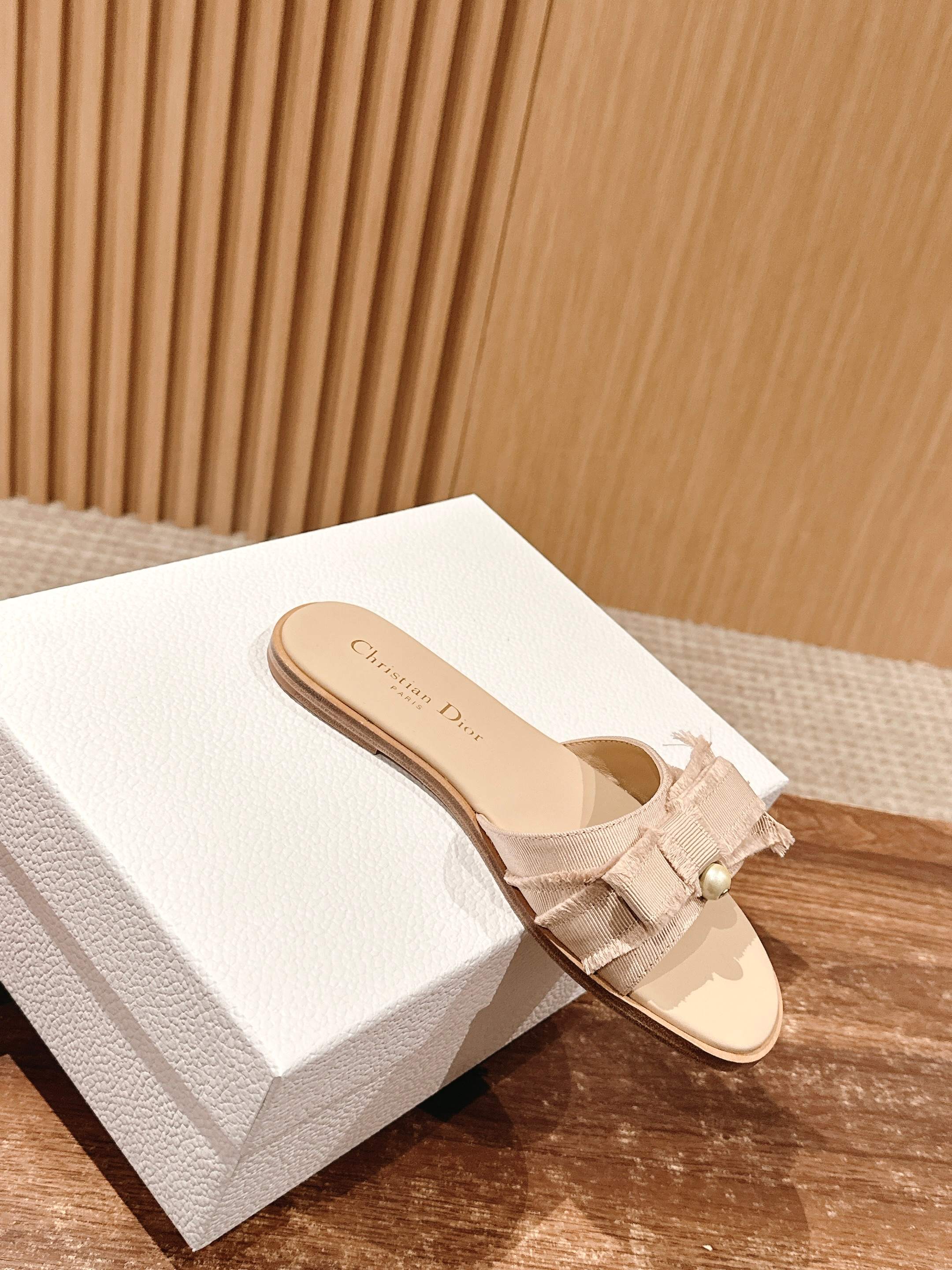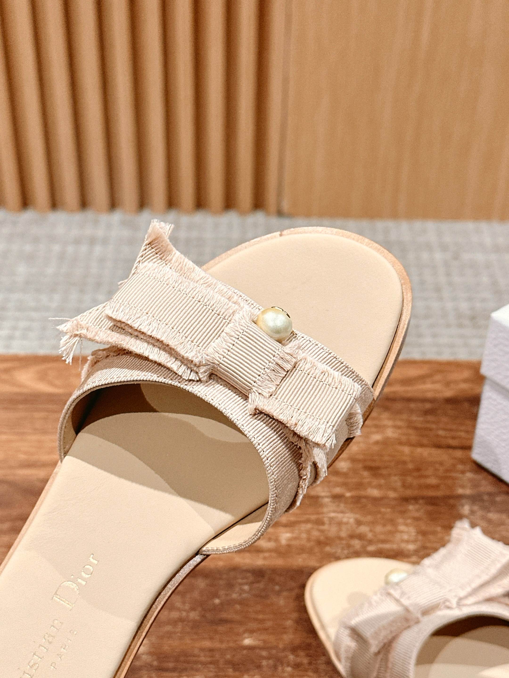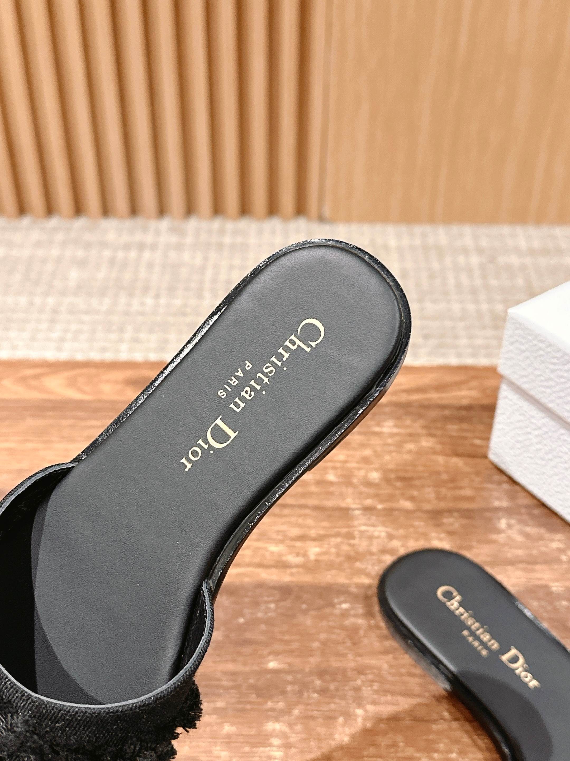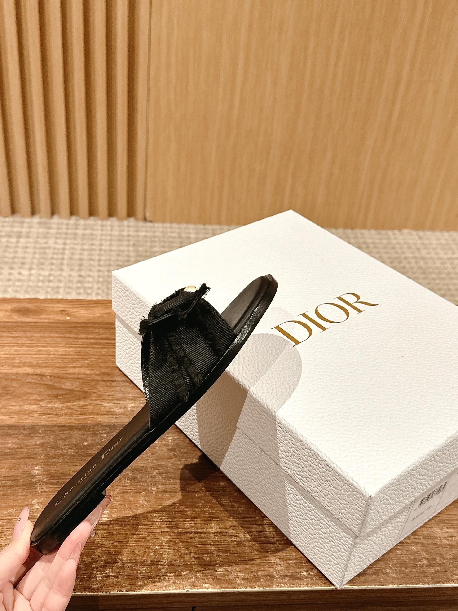 𝐂𝐇𝐑𝐈𝐒𝐓𝐈𝐀𝐍 𝐃𝐈𝐎𝐑# 迪奥新款珍珠蝴蝶拖鞋 黑色流苏罗缎鞋面尽显时尚格调 点缀以白色珠饰及蝴蝶结为摩登造型增添高雅气质