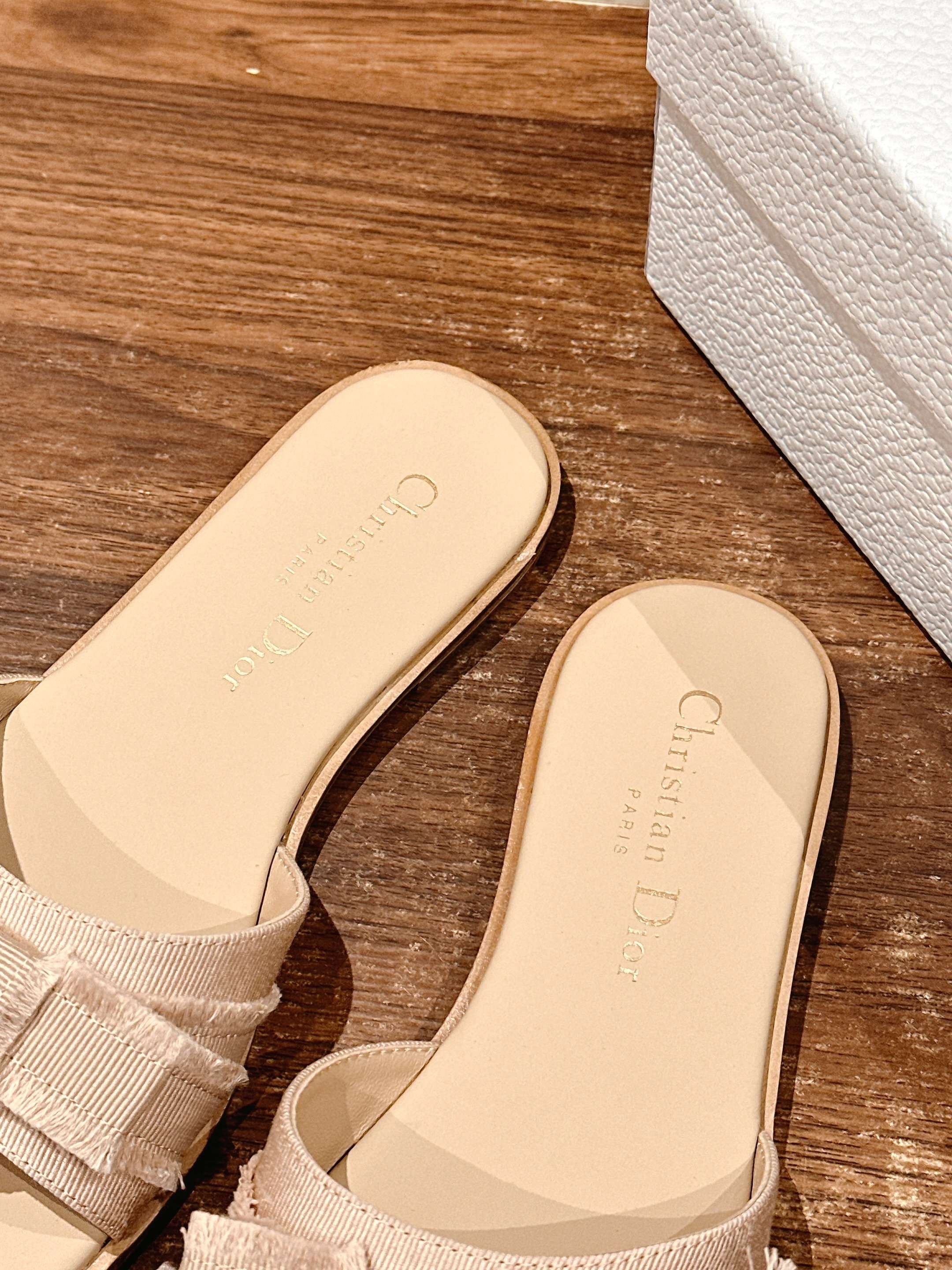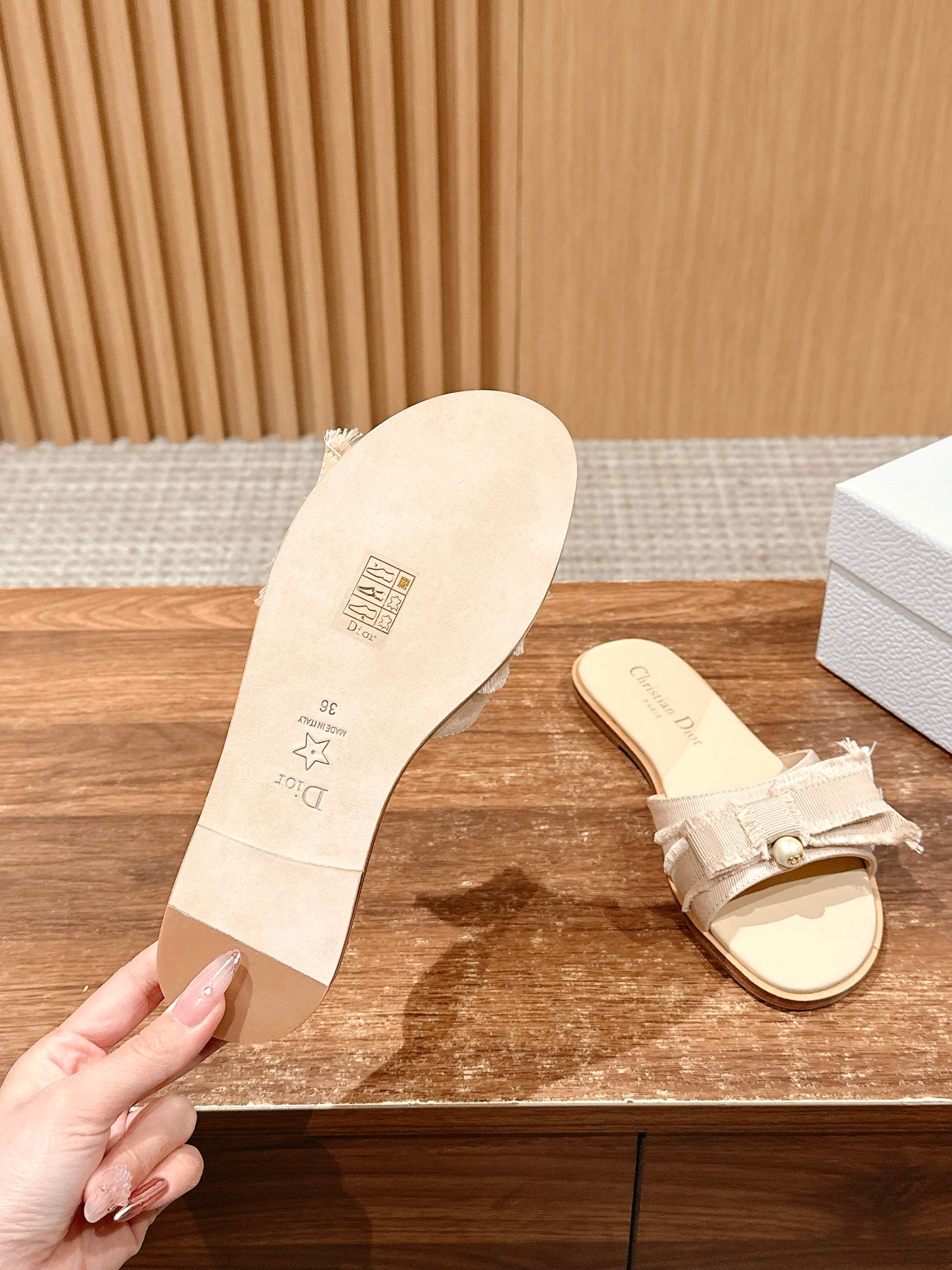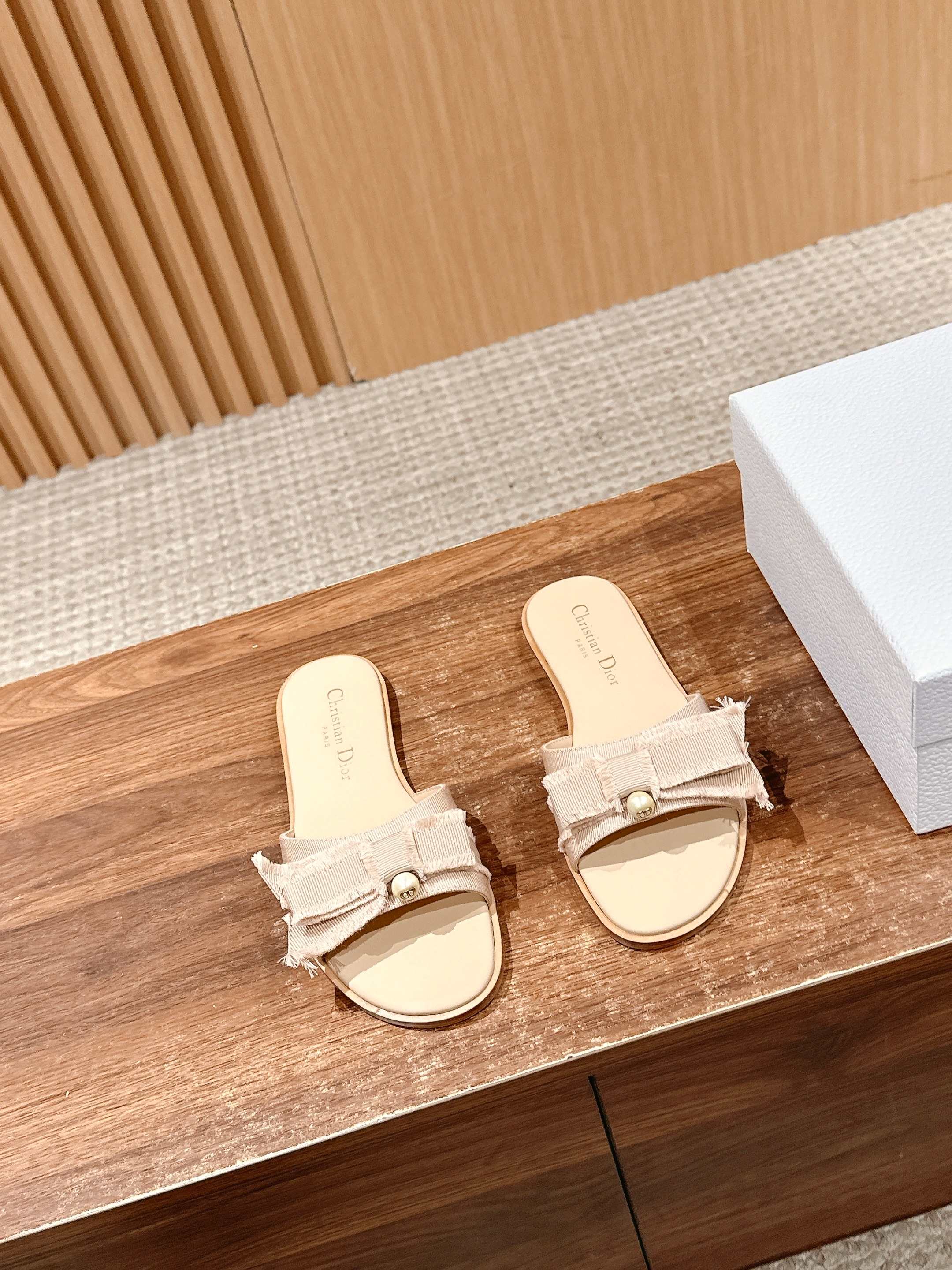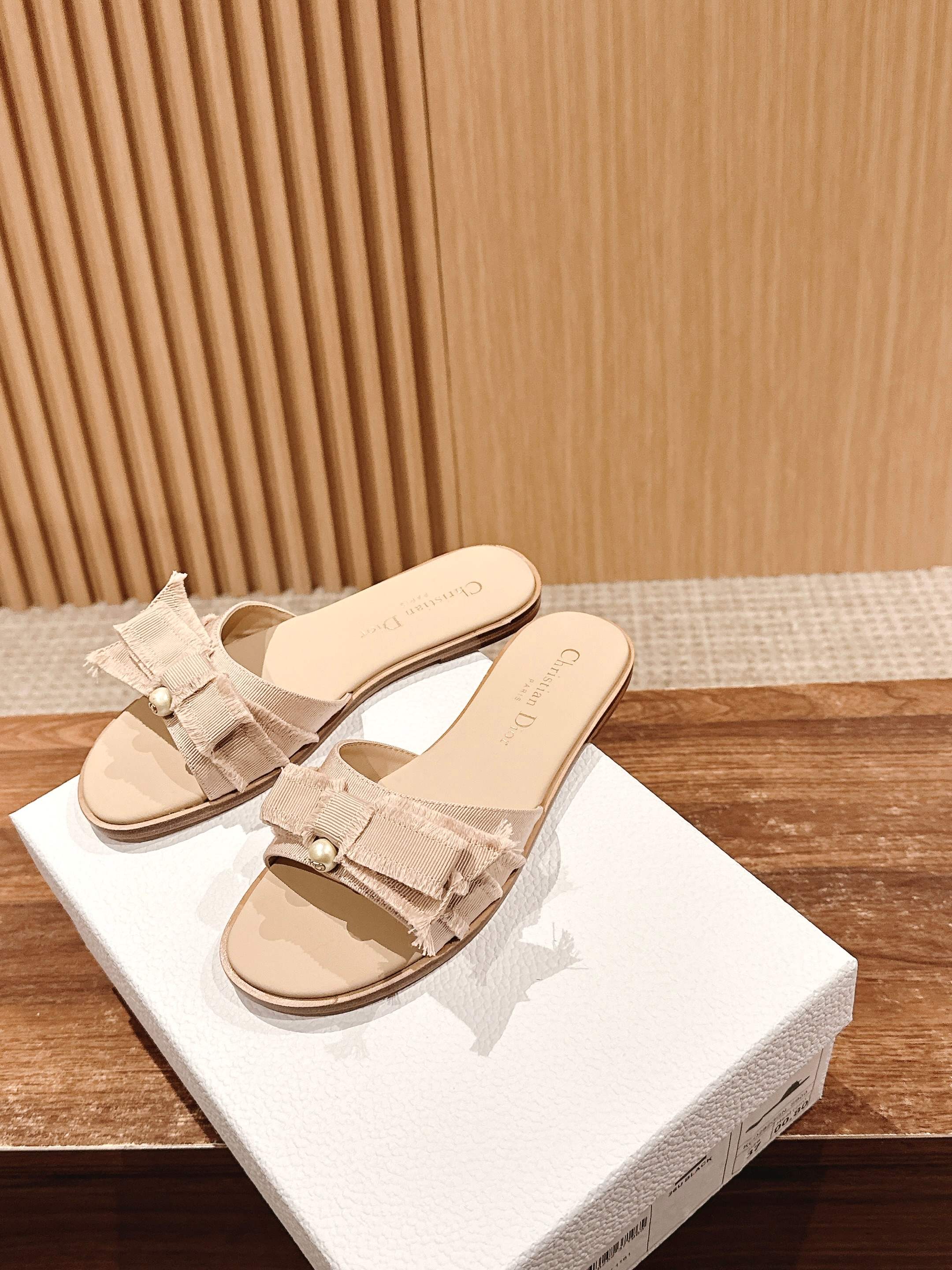 𝐂𝐇𝐑𝐈𝐒𝐓𝐈𝐀𝐍 𝐃𝐈𝐎𝐑# 迪奥新款珍珠蝴蝶拖鞋 黑色流苏罗缎鞋面尽显时尚格调 点缀以白色珠饰及蝴蝶结为摩登造型增添高雅气质