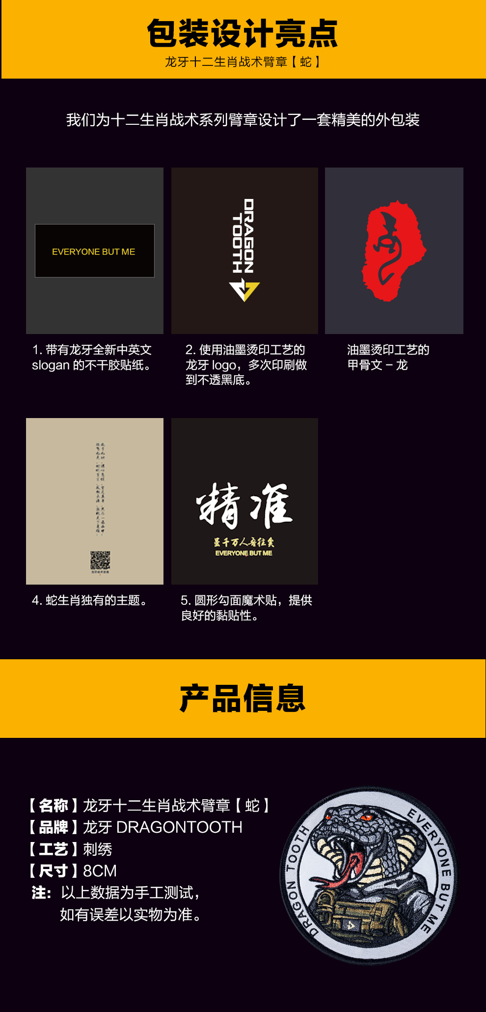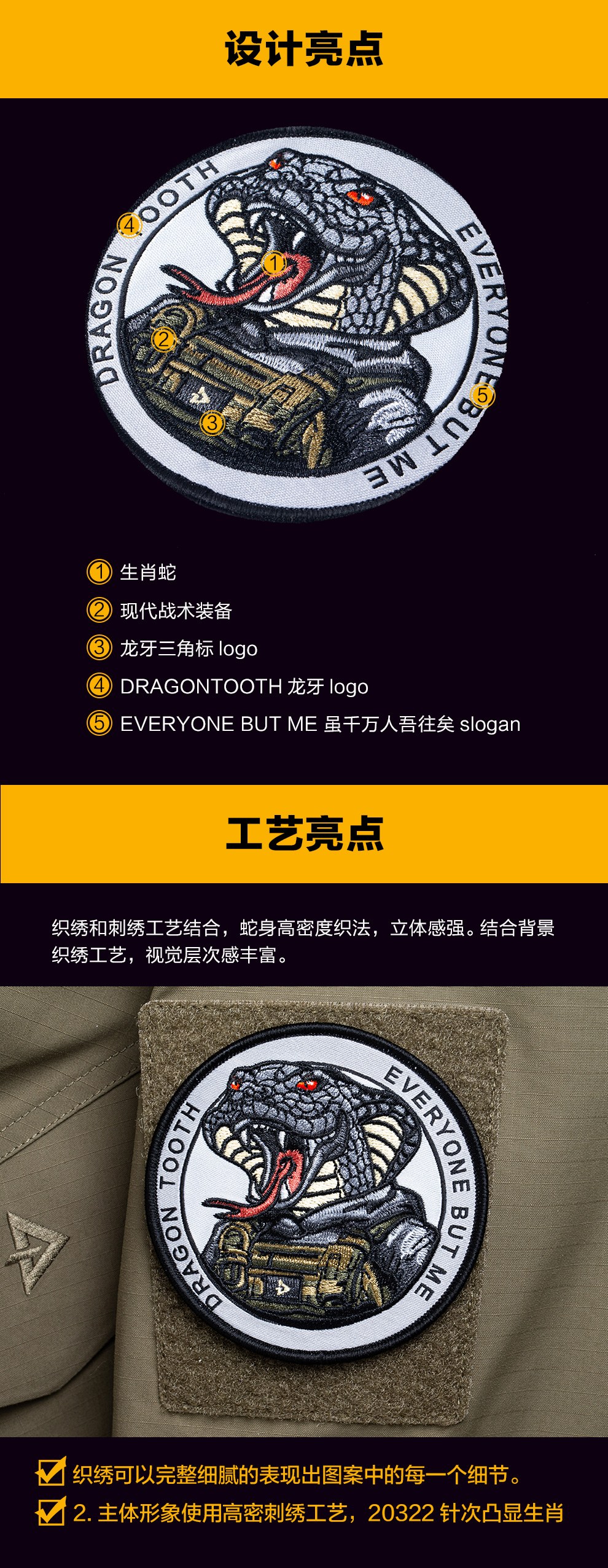 十二生肖战术臂章(蛇)魔术贴章中国元素刺绣战术装备圆形男