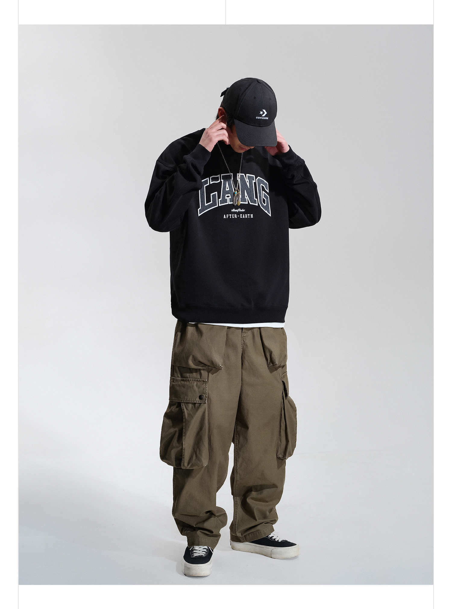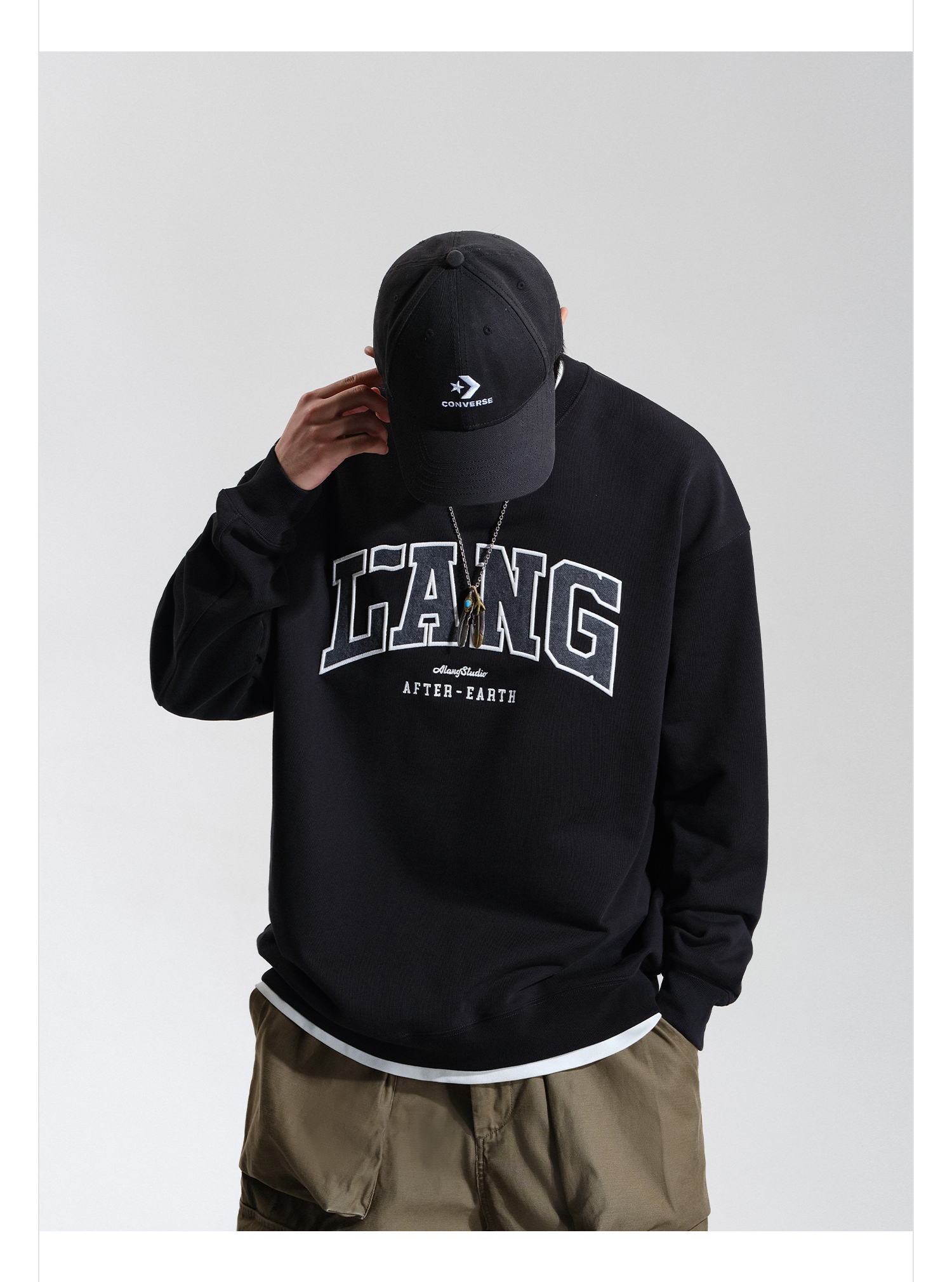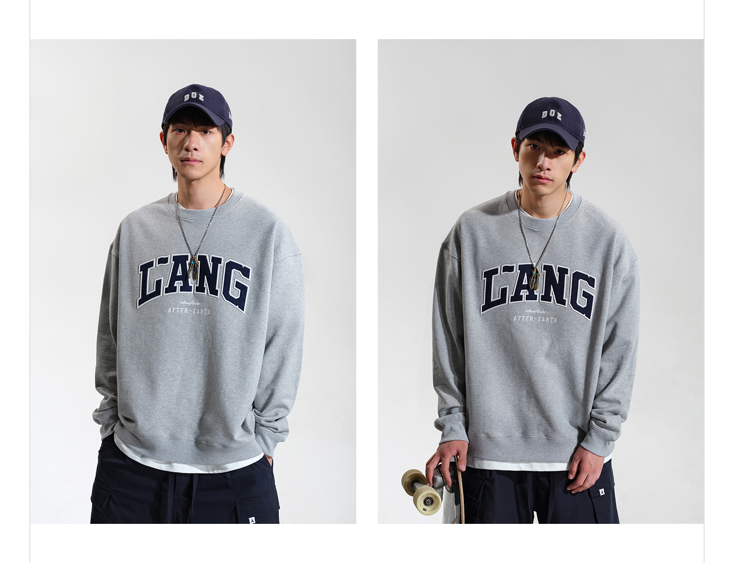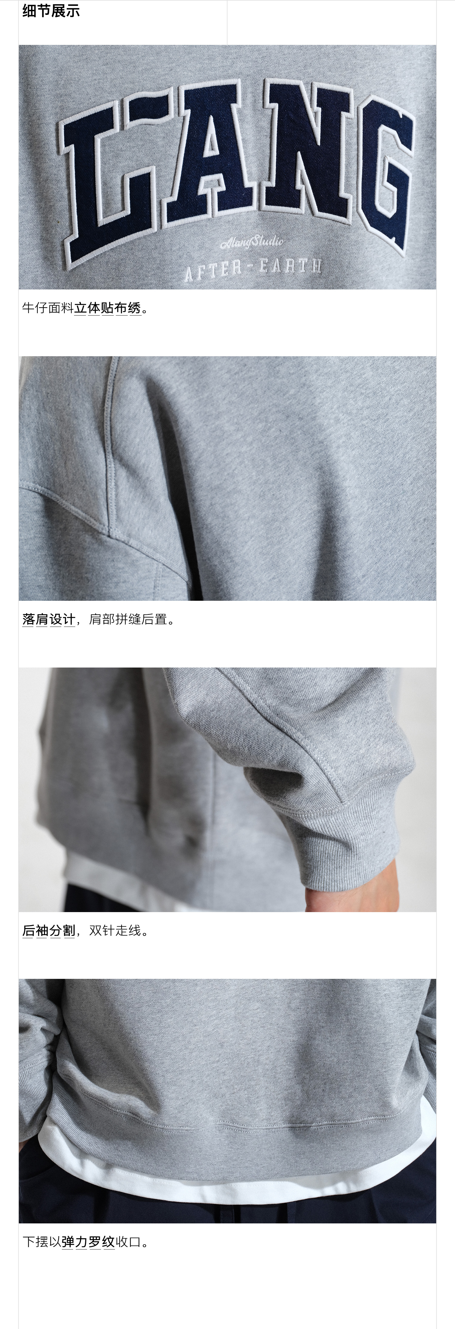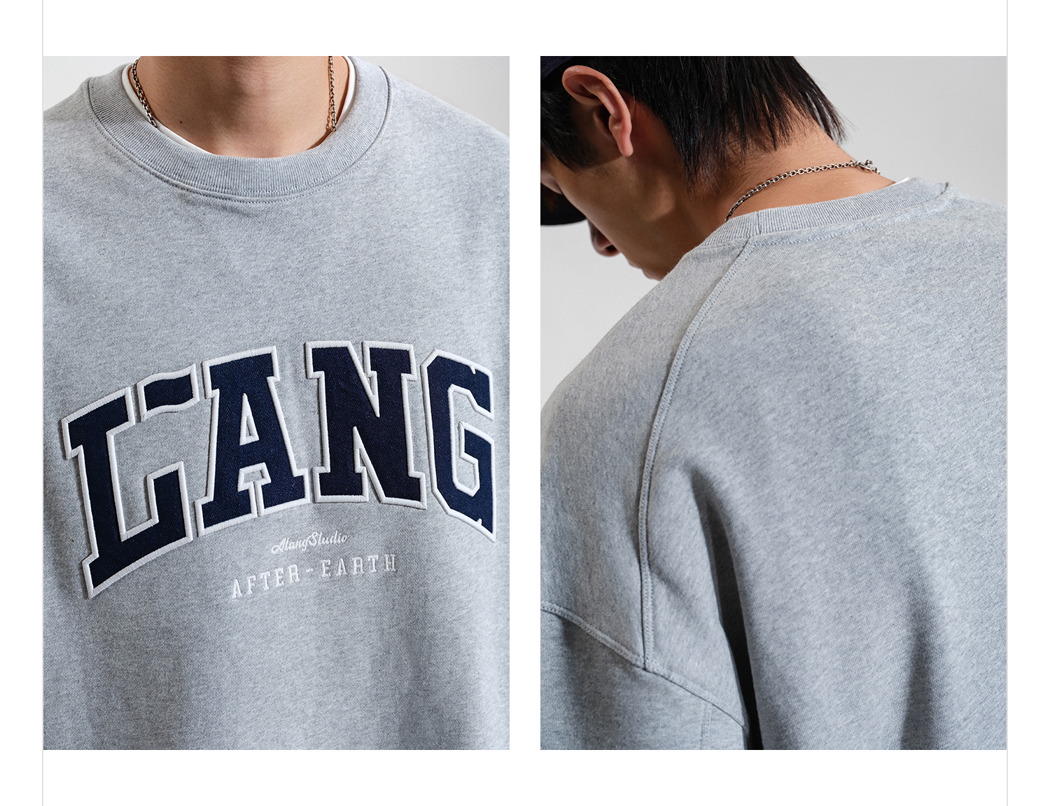 徐太浪秋季新款灰色宽松圆领套头卫衣男美式潮牌oversize纯棉上衣