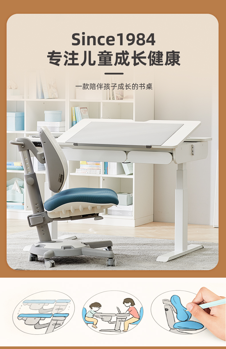 康朴乐新款120cm L型陪读款康朴乐爱丁堡电动学习桌/柏拉图椅