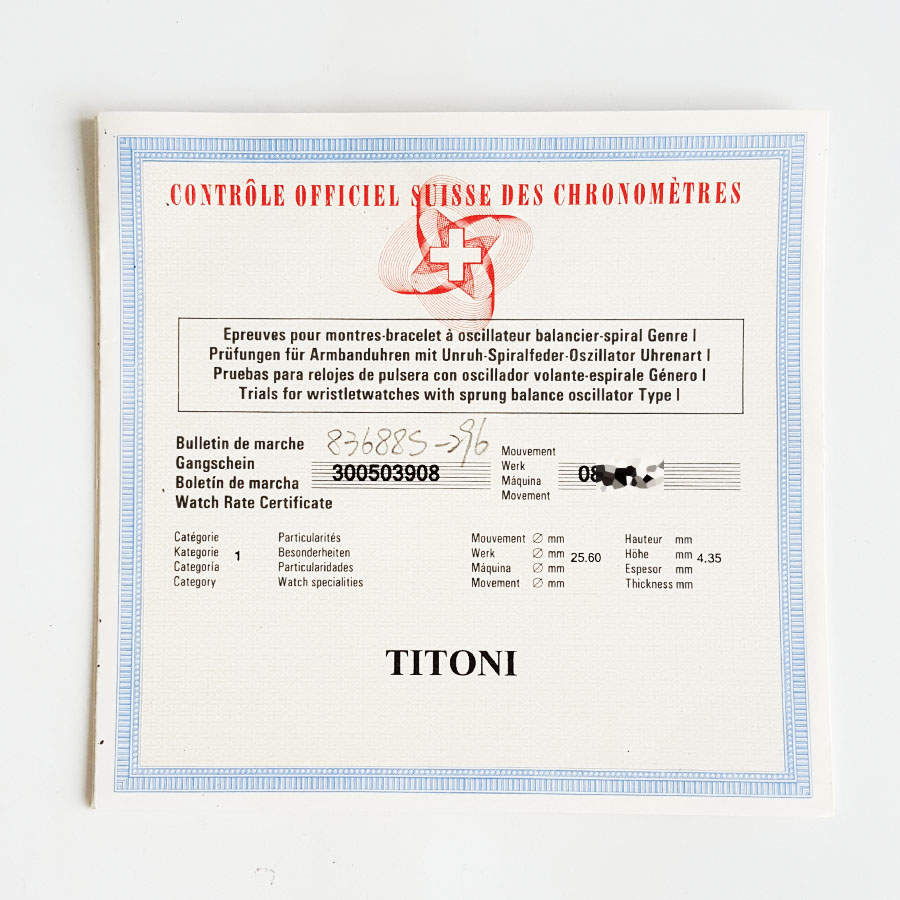 【99新】TITONI 梅花83688 S-296天文台认证自动机械机芯日期显示40MM(男款)Master Series大师系列精钢180426NJ20