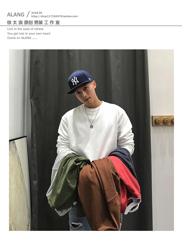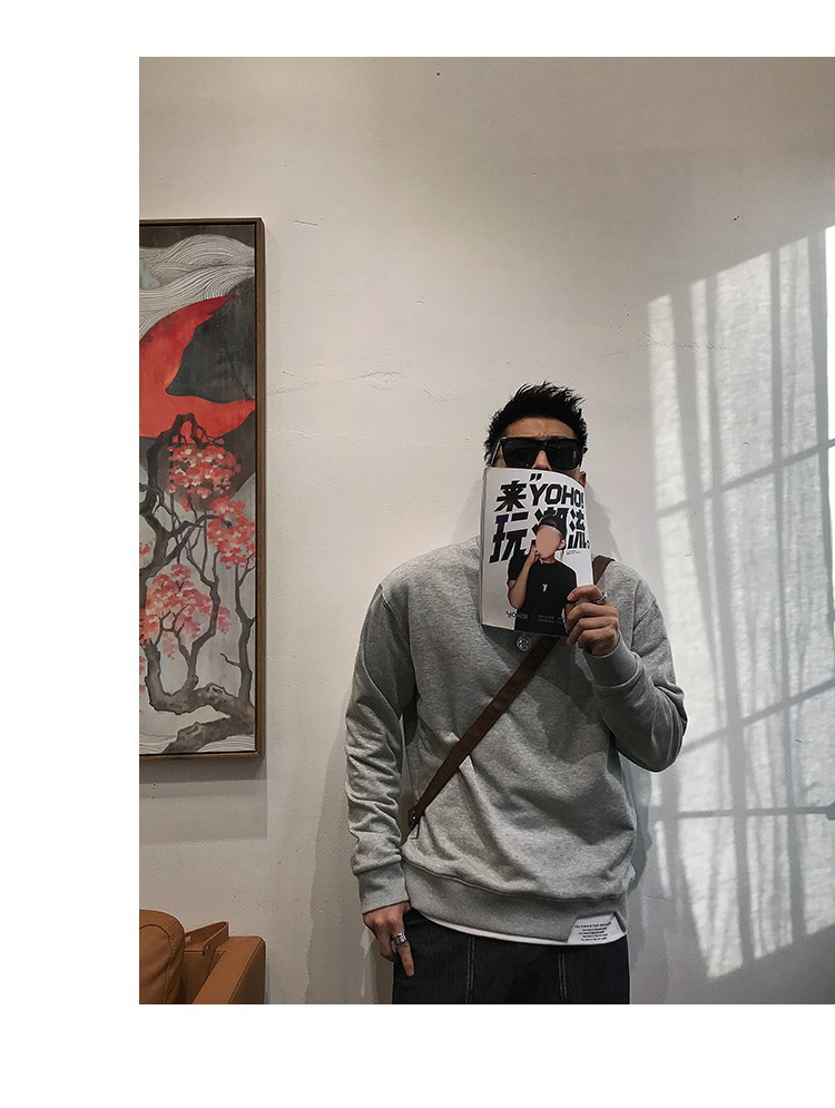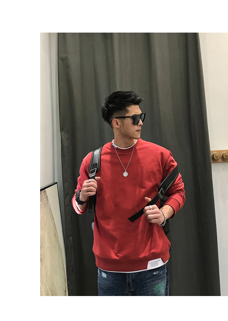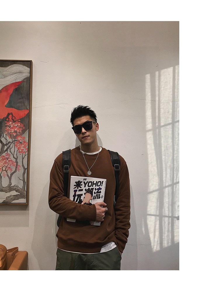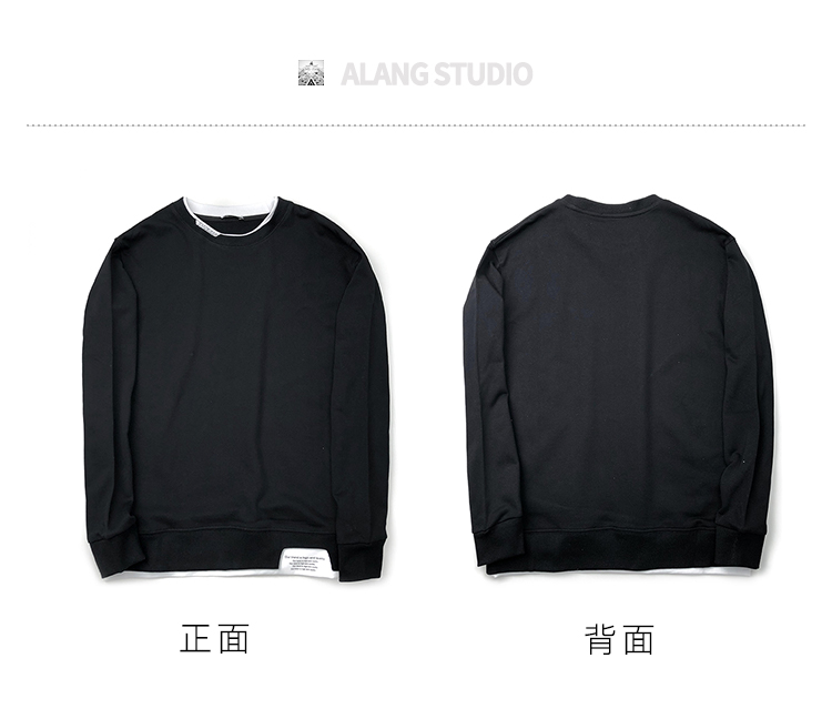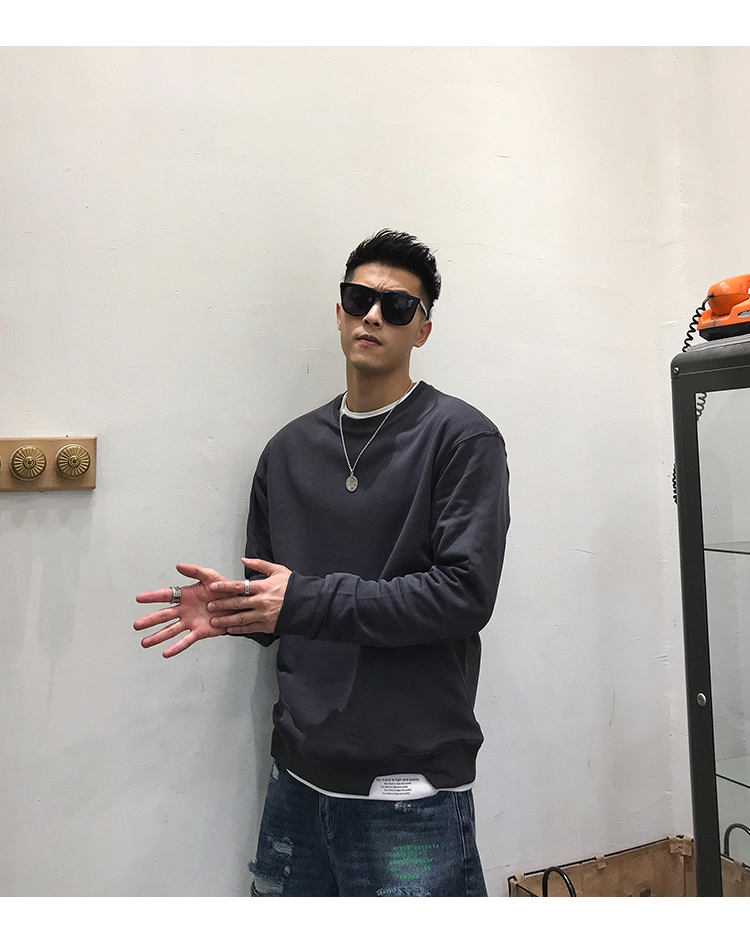 徐太浪日系假两件圆领卫衣男春秋2023新款高级感打底纯色长袖上衣