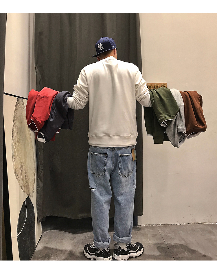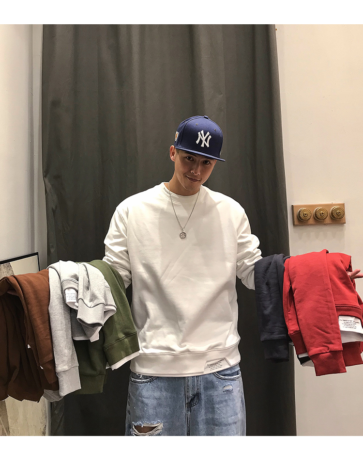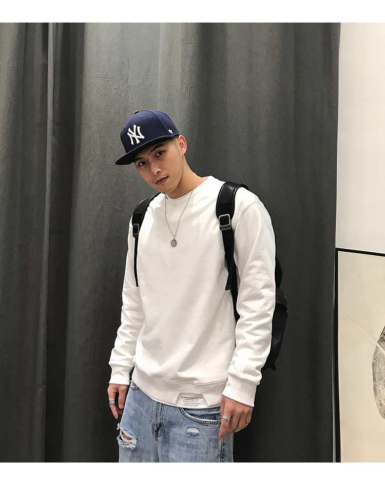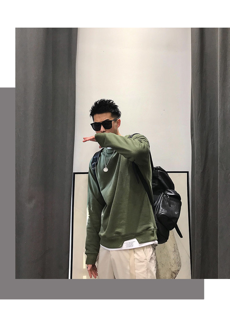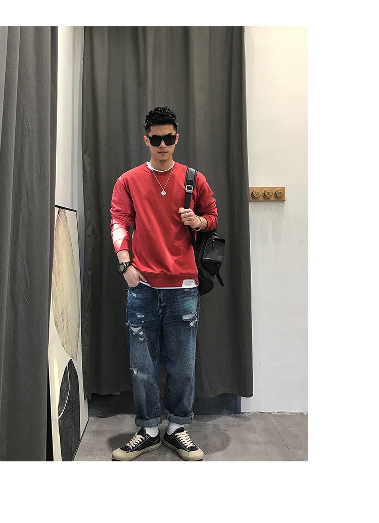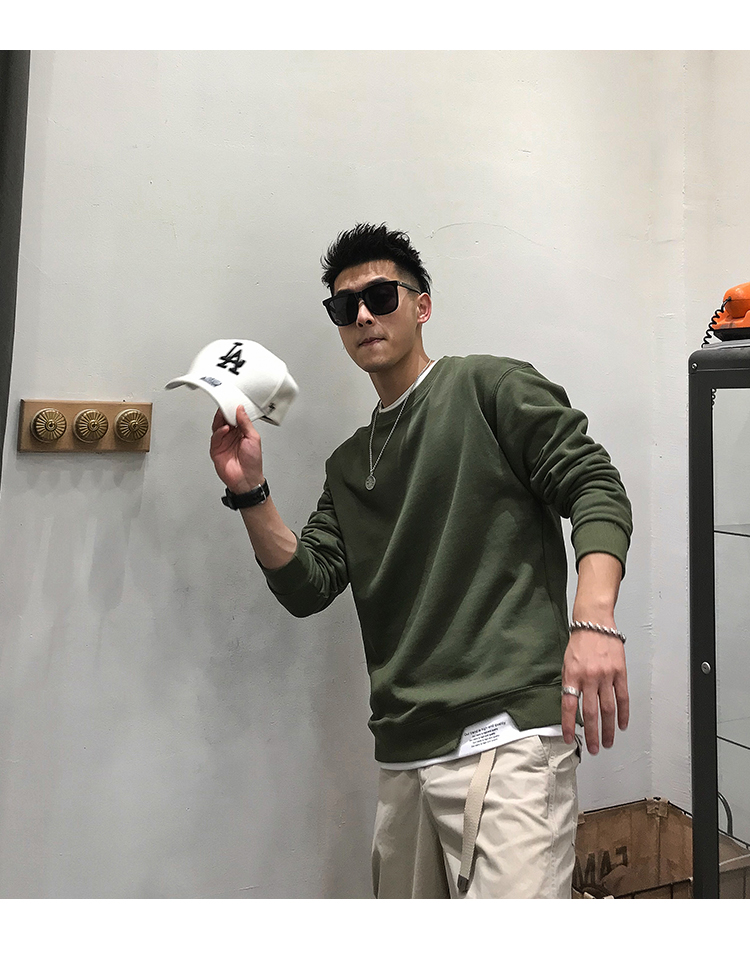 徐太浪日系假两件圆领卫衣男春秋2023新款高级感打底纯色长袖上衣