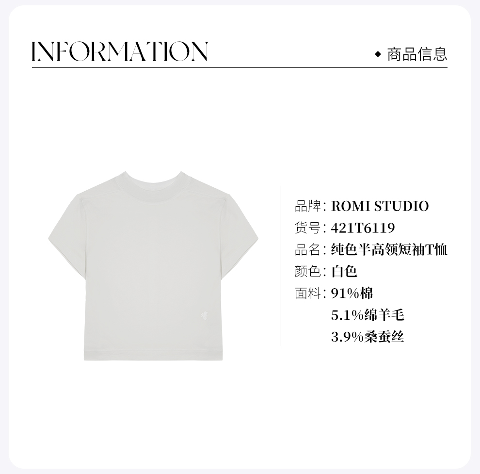 ROMI STUDIO “法式午后” 桑蚕丝绵羊毛混纺半高领短袖T恤421T6119