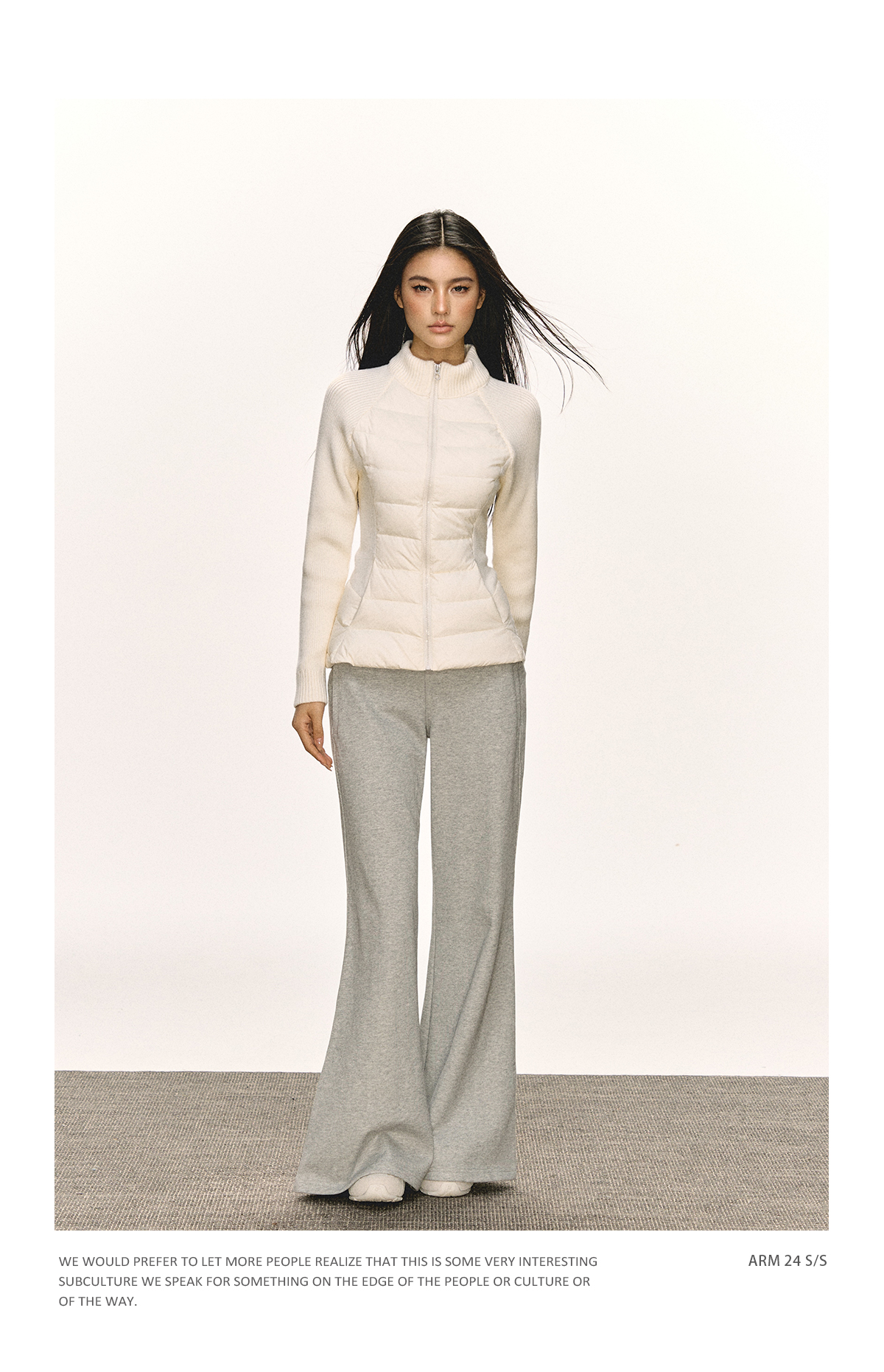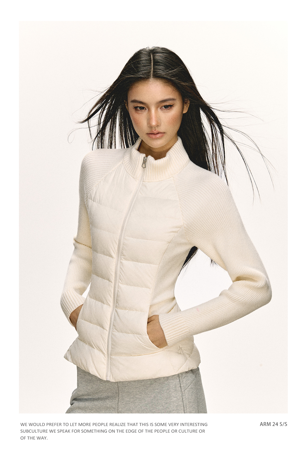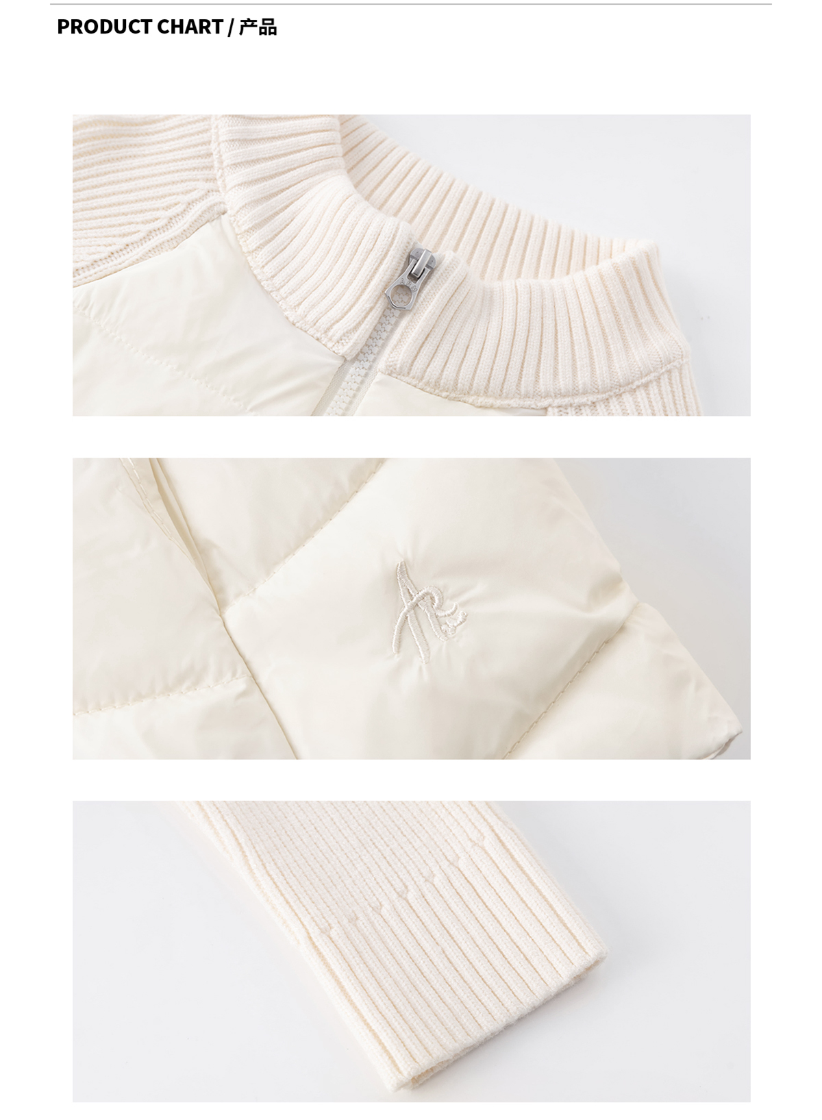 Ariseism 美式复古立领针织拼接羽绒服女秋冬新款修身上衣