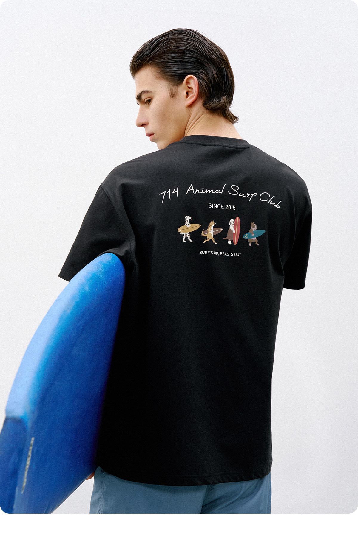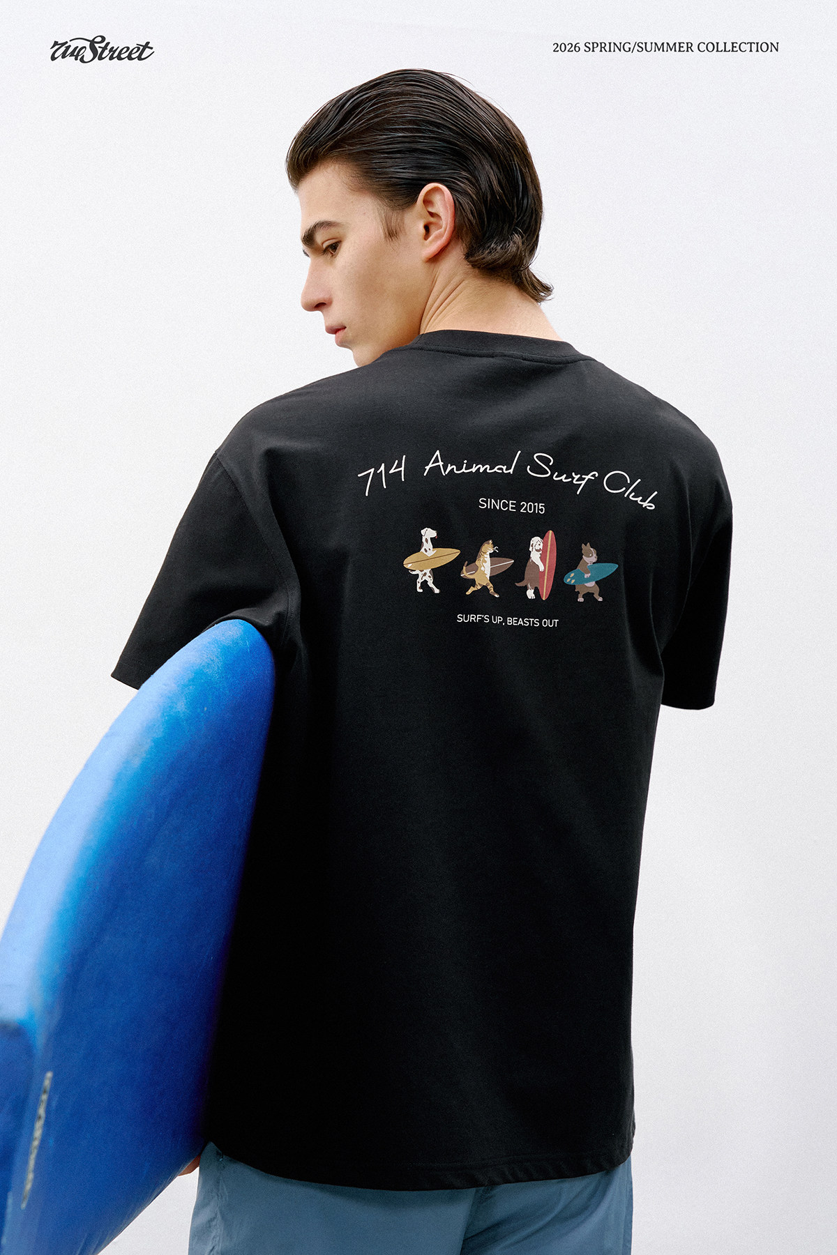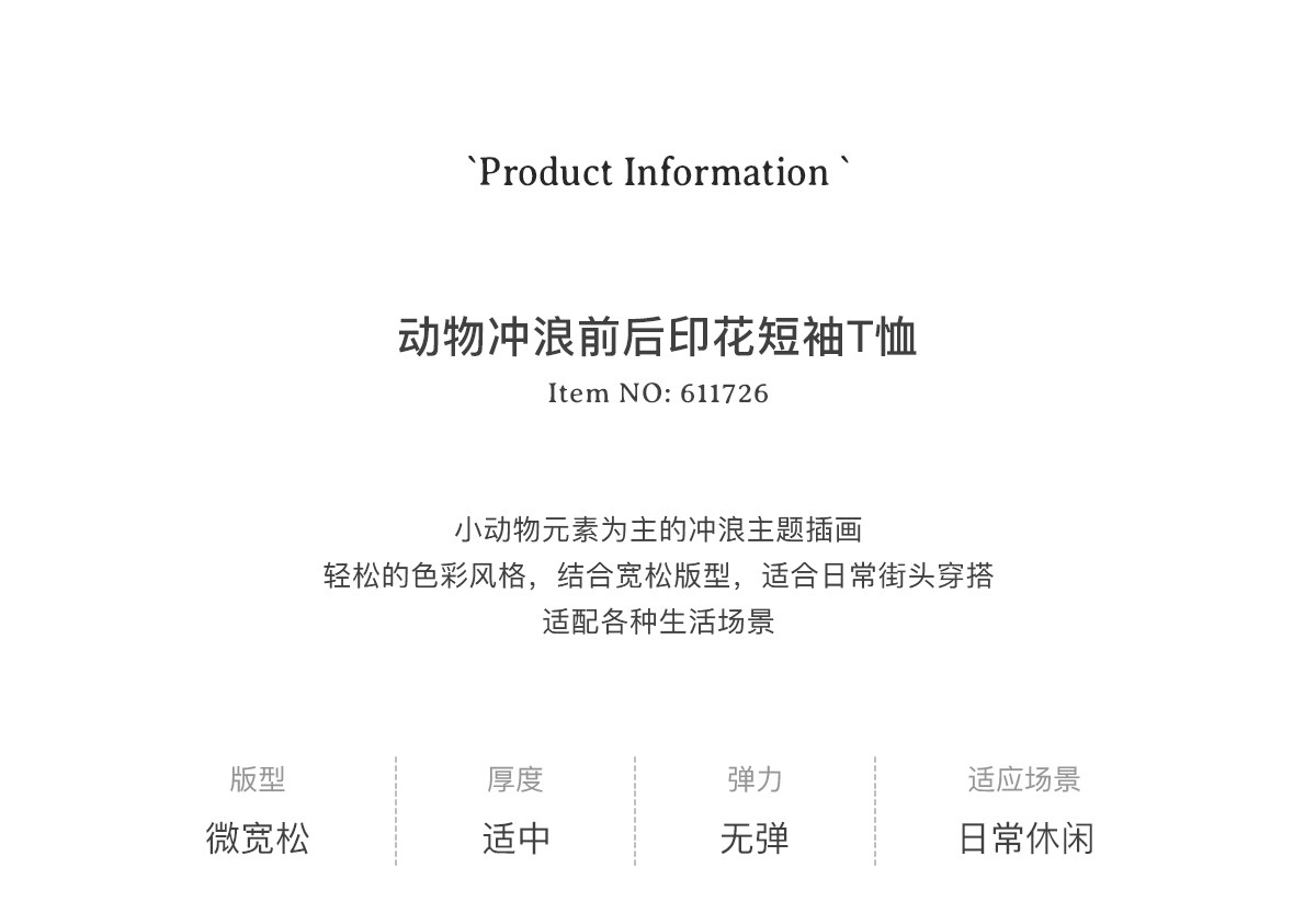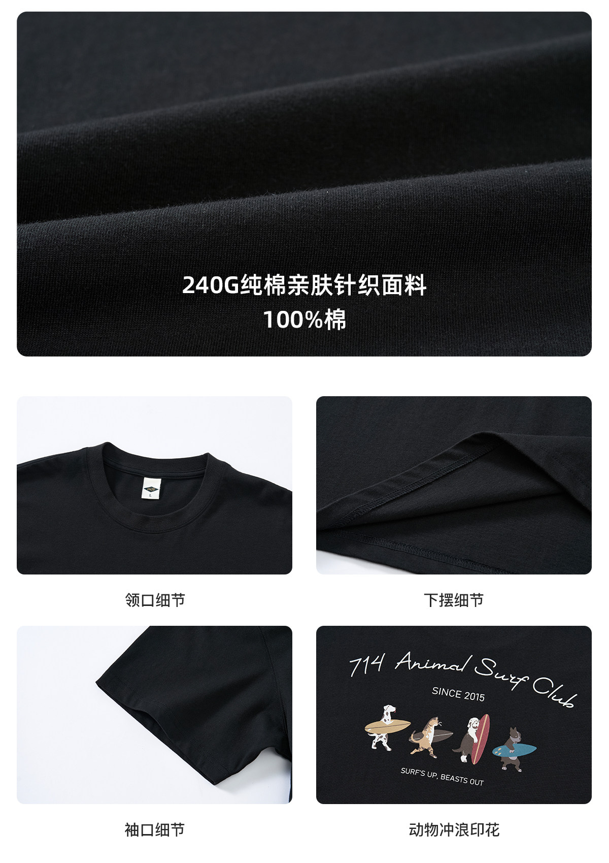 714street前后动物冲浪印花纯棉短袖T恤男2026夏季情侣款半袖上衣
