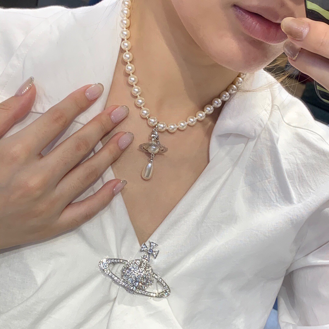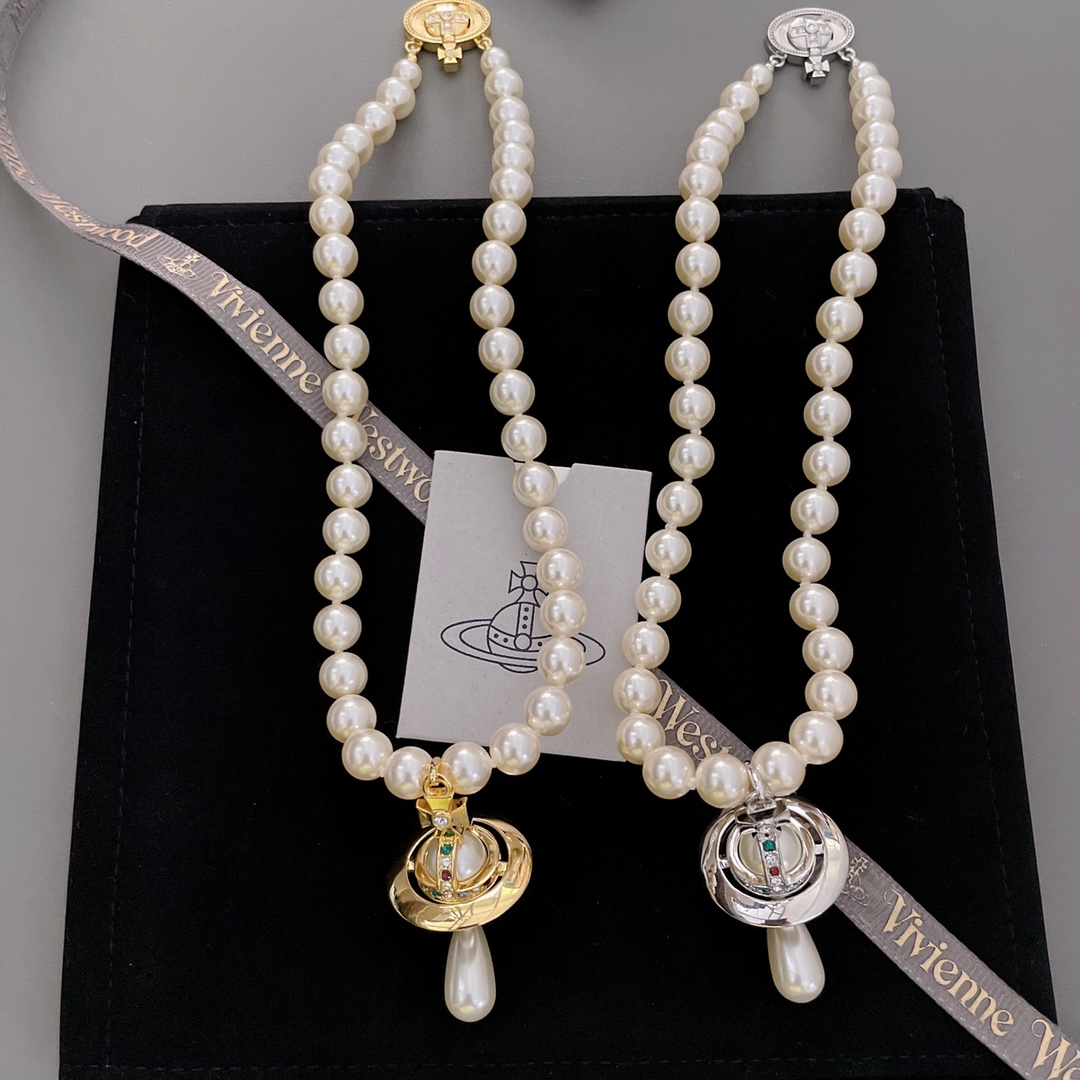 【VivienneWestwood】宝宝,什么是快乐星球,来,这就是快乐星球!绝美立体土星水滴珍珠项链!金银两个颜色!配包装!重磅推荐,一定要入,闭眼入准没错!纯粹王冠球是经典的象征,闪耀土星环勾勒未来波光流转间,开启一场与未来的崭新际遇!