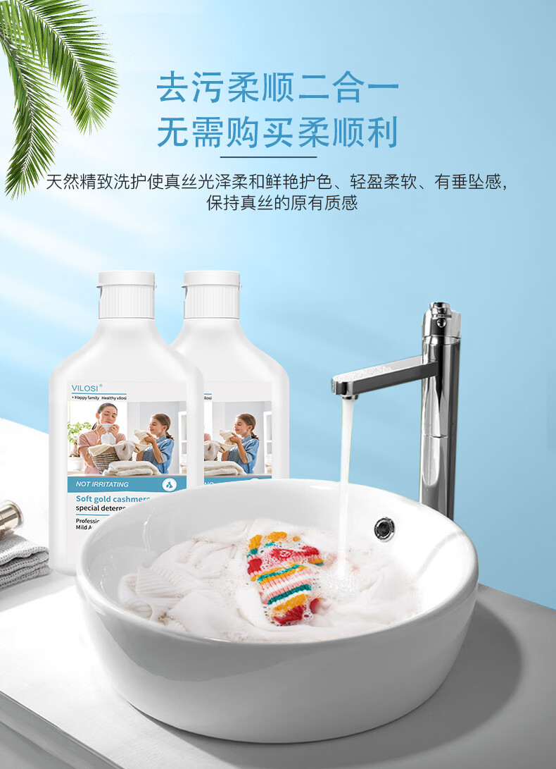 【1滴还你新衣】vilosi 羊绒真丝洗衣液 500ml*2瓶 赠婴童专用爆炸盐 羊毛羊绒真丝羽绒护理专用,亲肤柔顺;护衣不褪色不变形,防静电