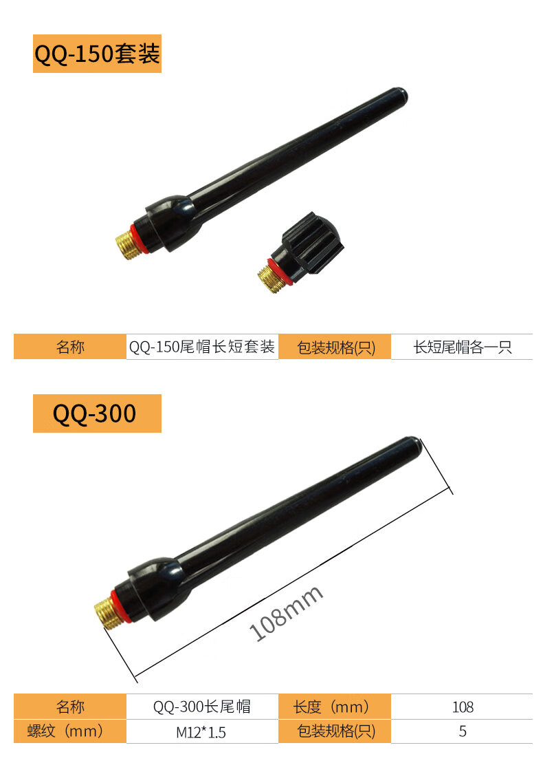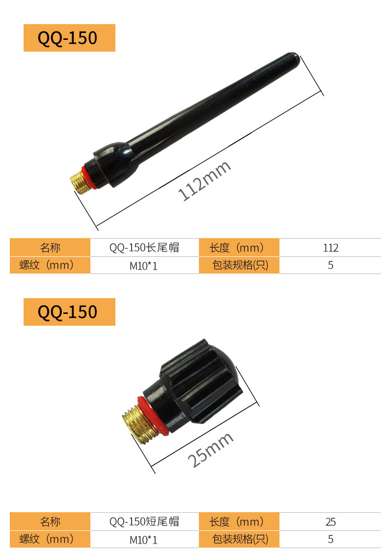 上海沪工氩弧焊枪配件【尾帽TIG/QQ-150】 枪尾长尾帽短尾帽钨针笔杆压杆压帽 及套装