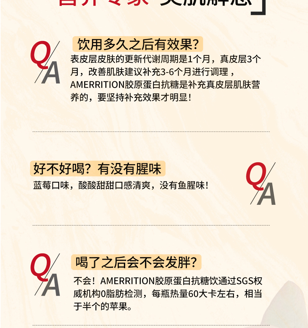 【18盒装】美国AMERRITION麦瑞绅坤胶原蛋白肽抗糖液态饮祛黄抗氧