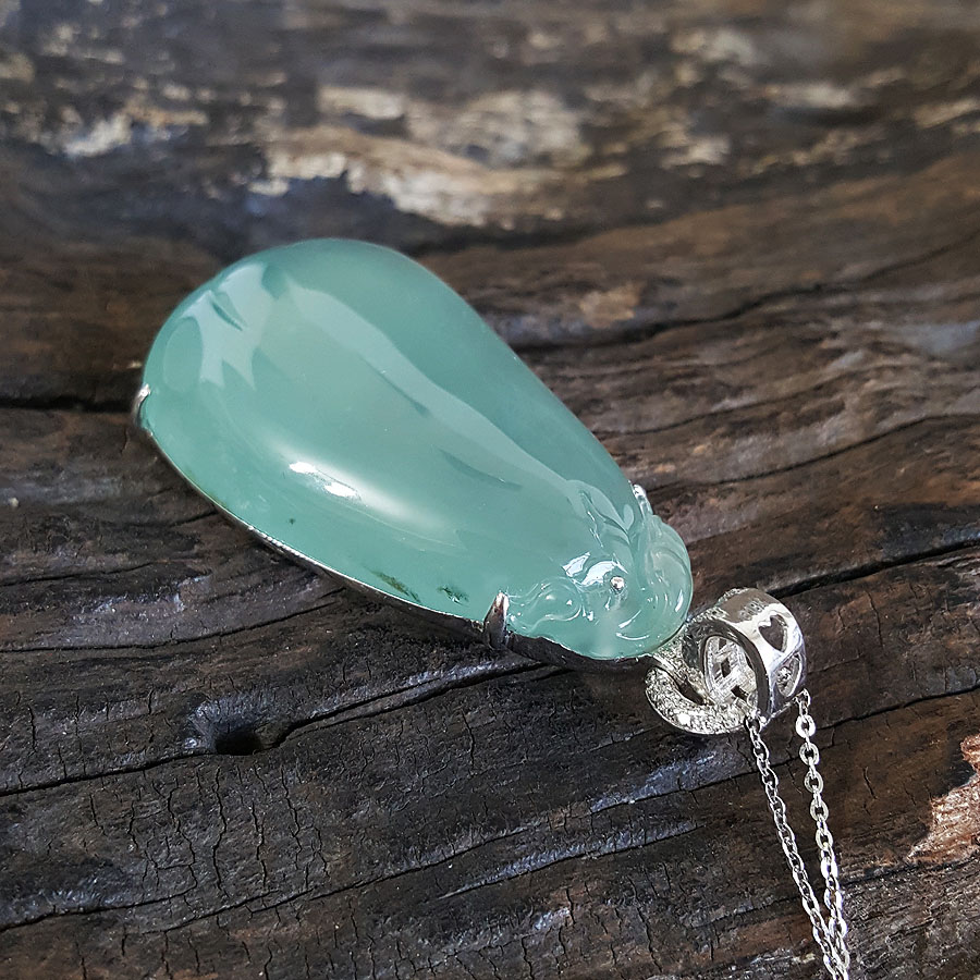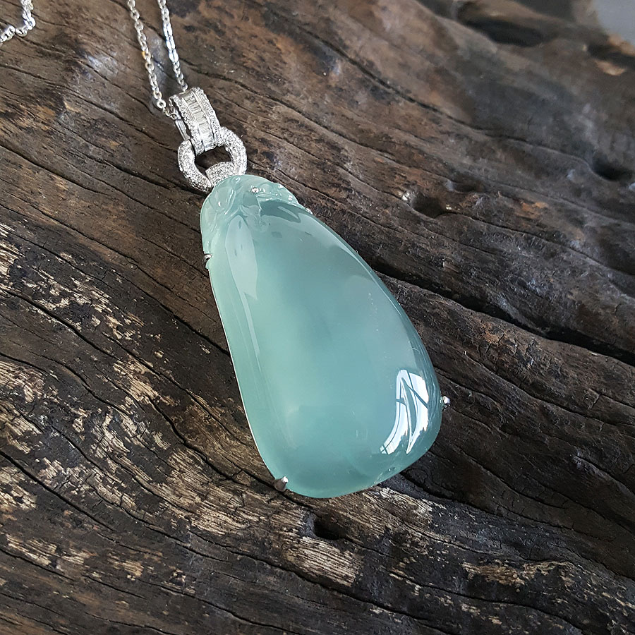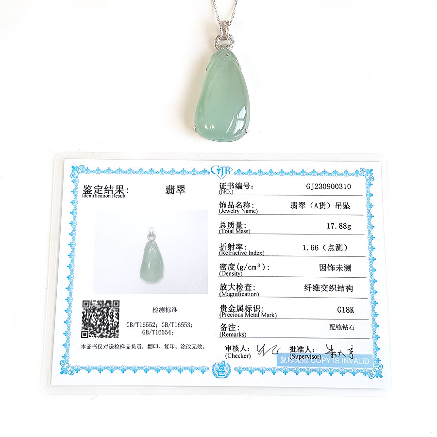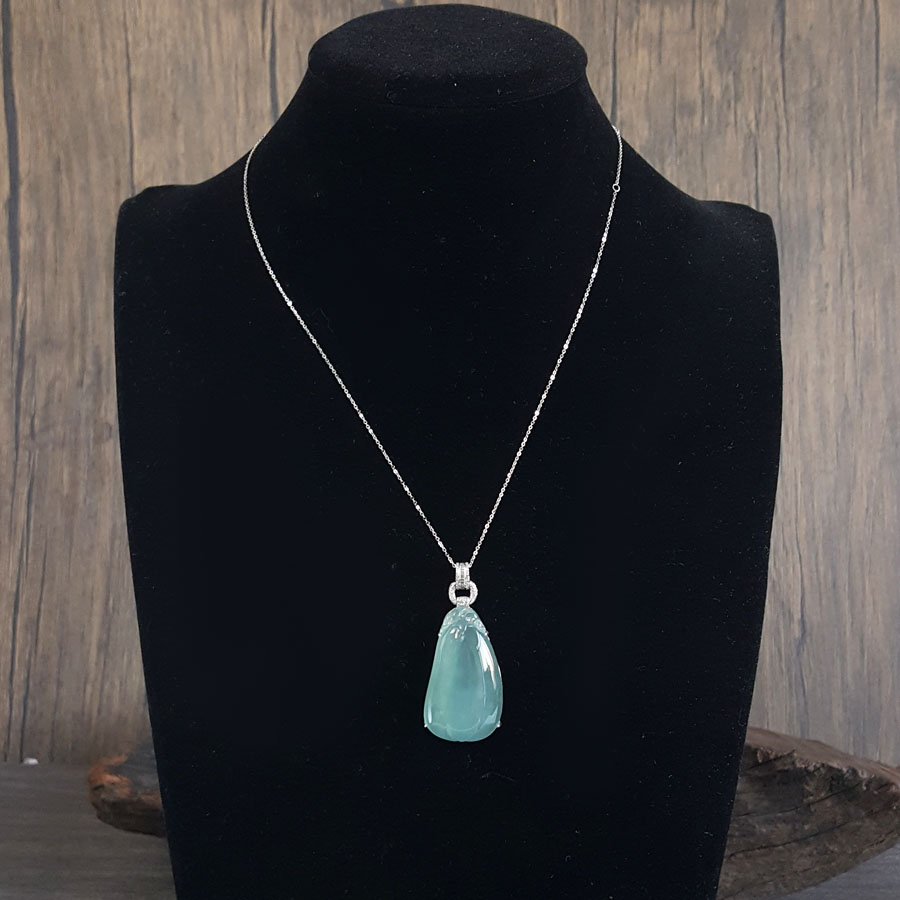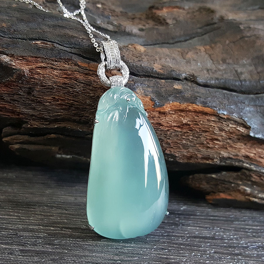 【天然正品】AU750白金镶钻镶天然A货冰种湖水绿福瓜造型翡翠(福气满满)吊坠项链 050224XY13+