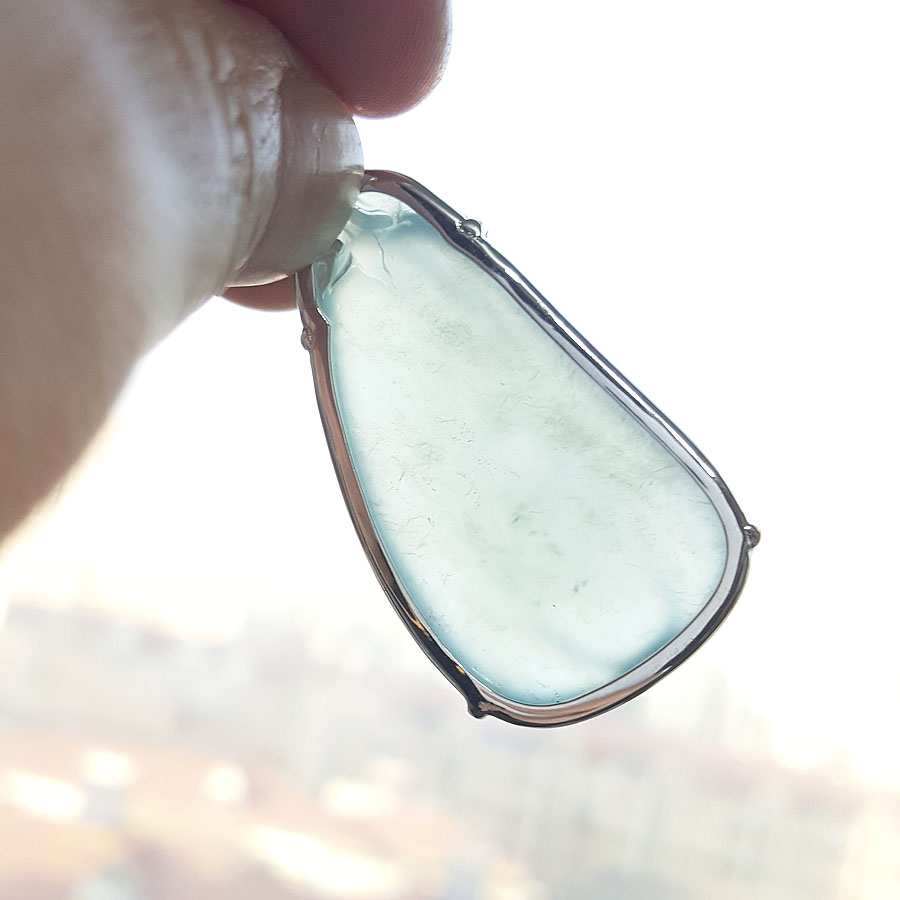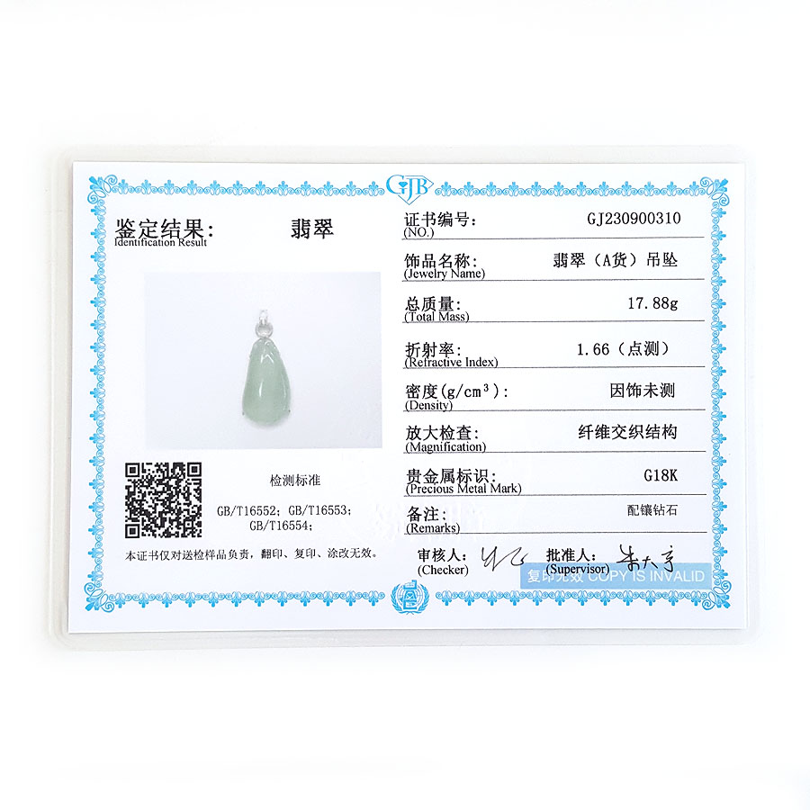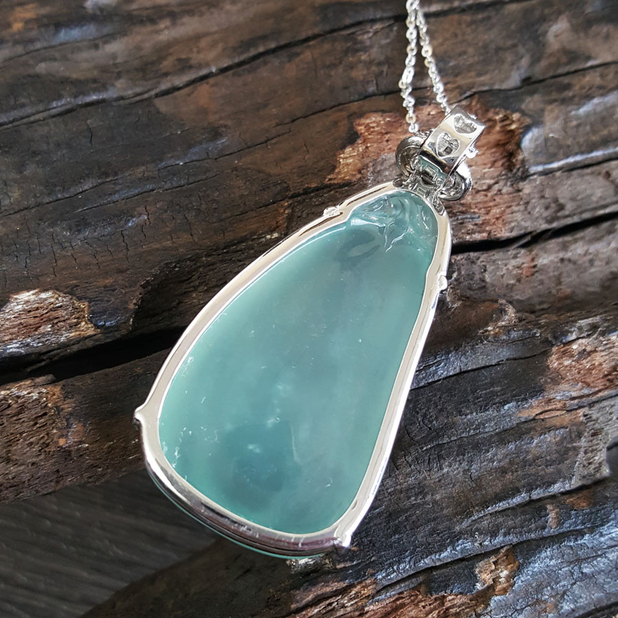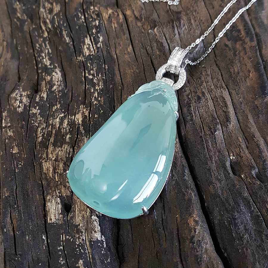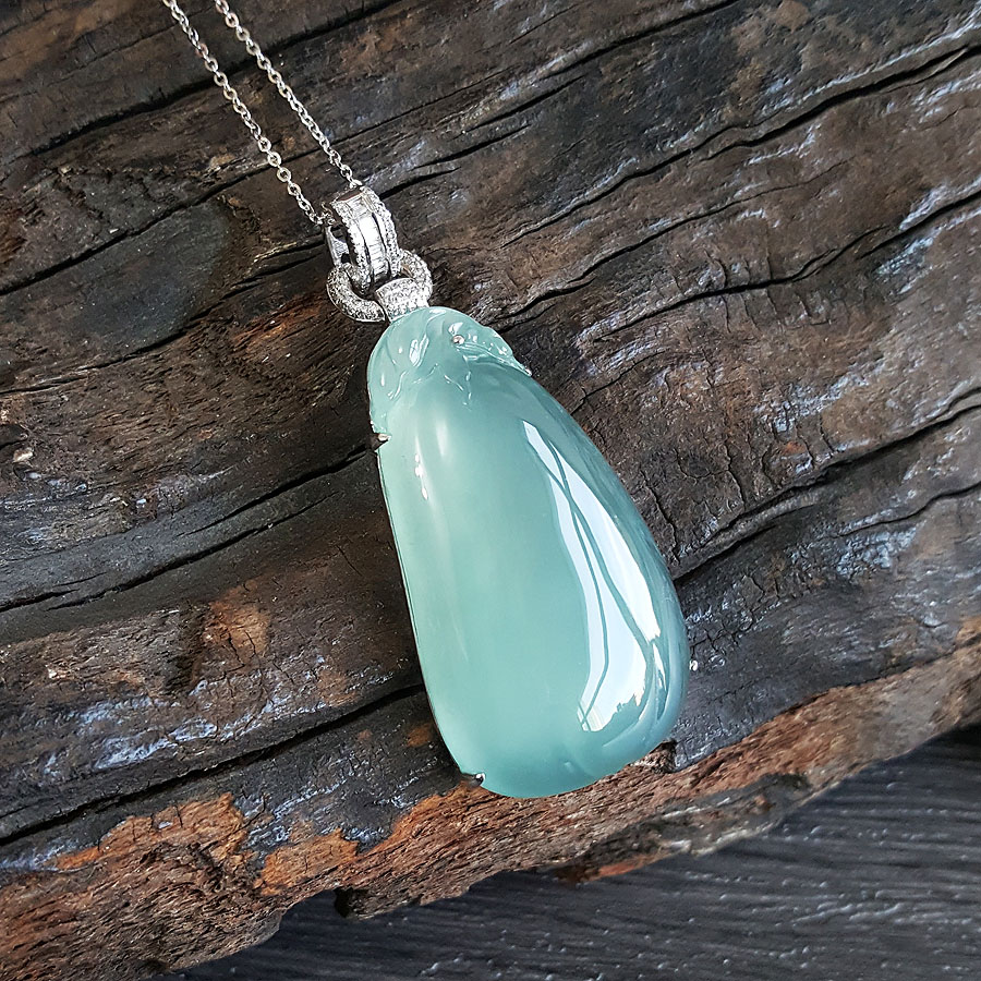 【天然正品】AU750白金镶钻镶天然A货冰种湖水绿福瓜造型翡翠(福气满满)吊坠项链 050224XY13+
