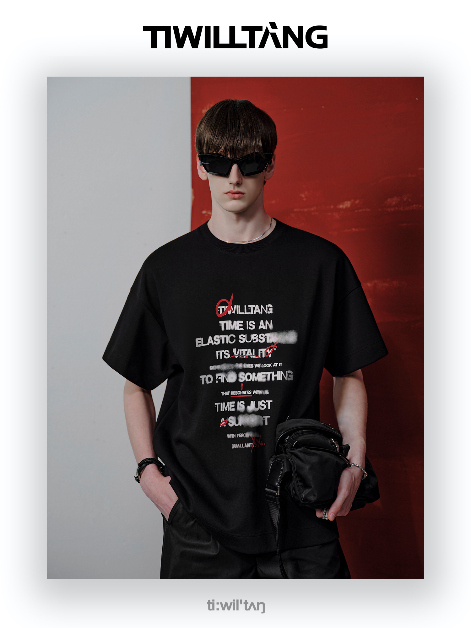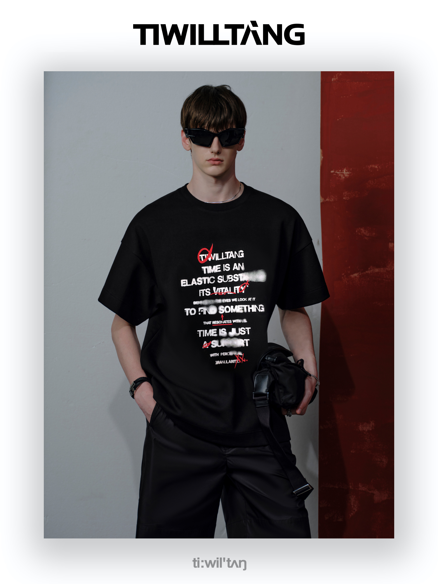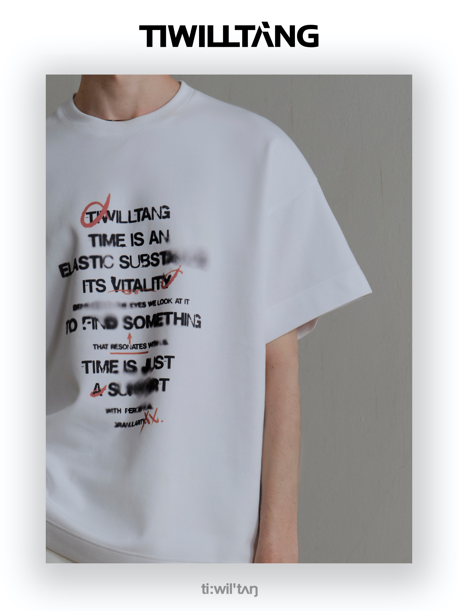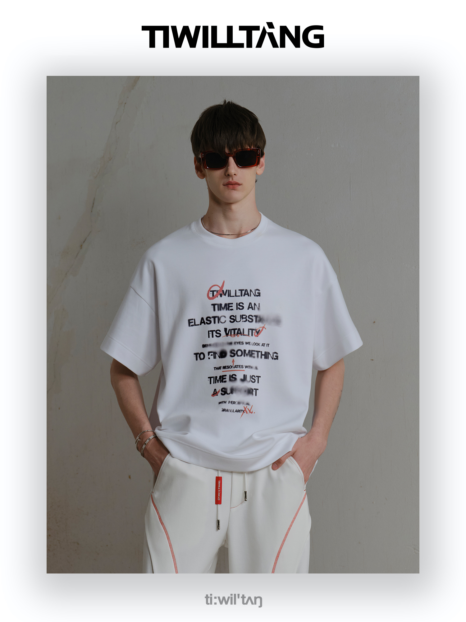 TIWILLTANG启世录“雾语烟晴”雾感文字印花短袖