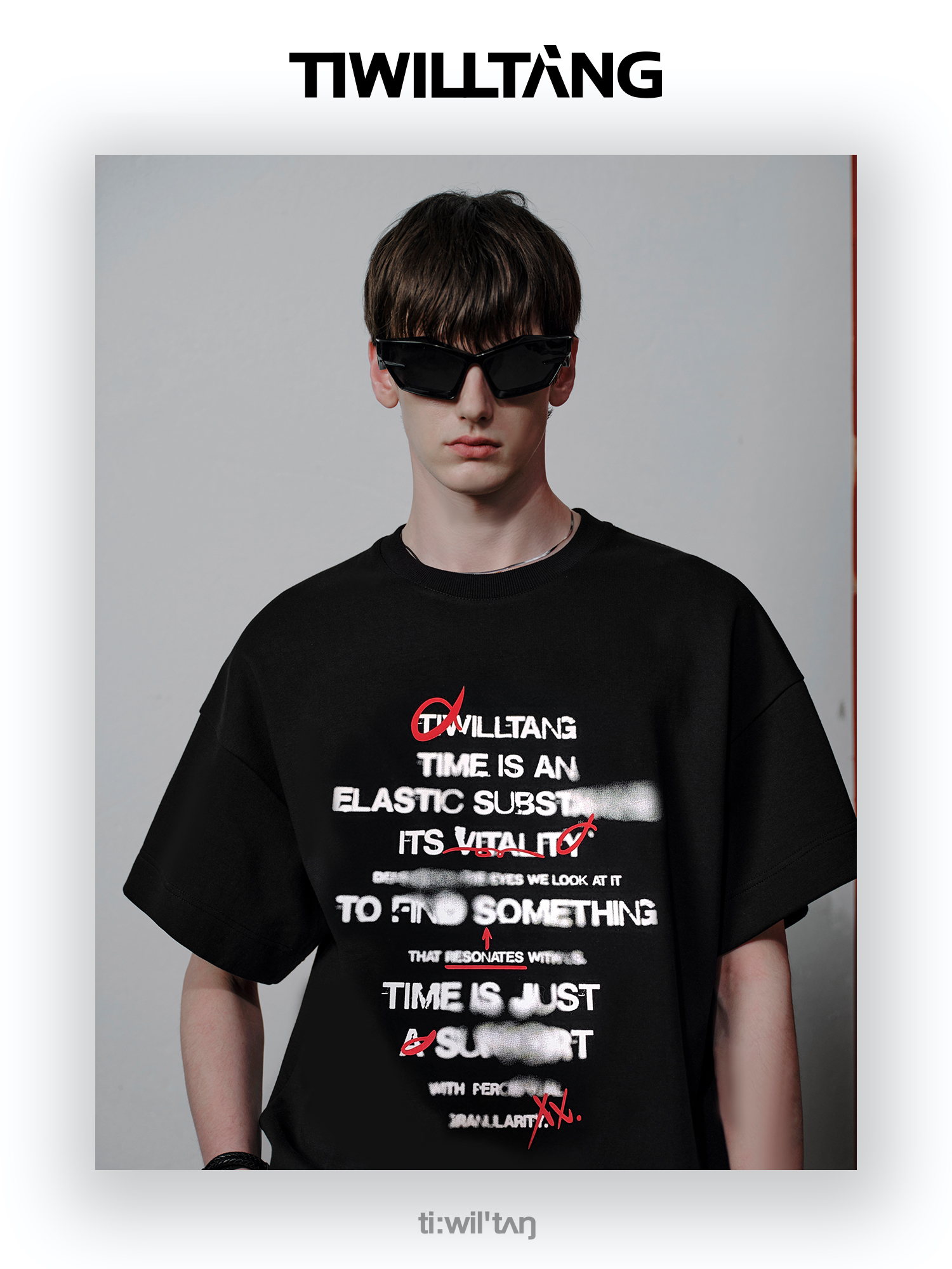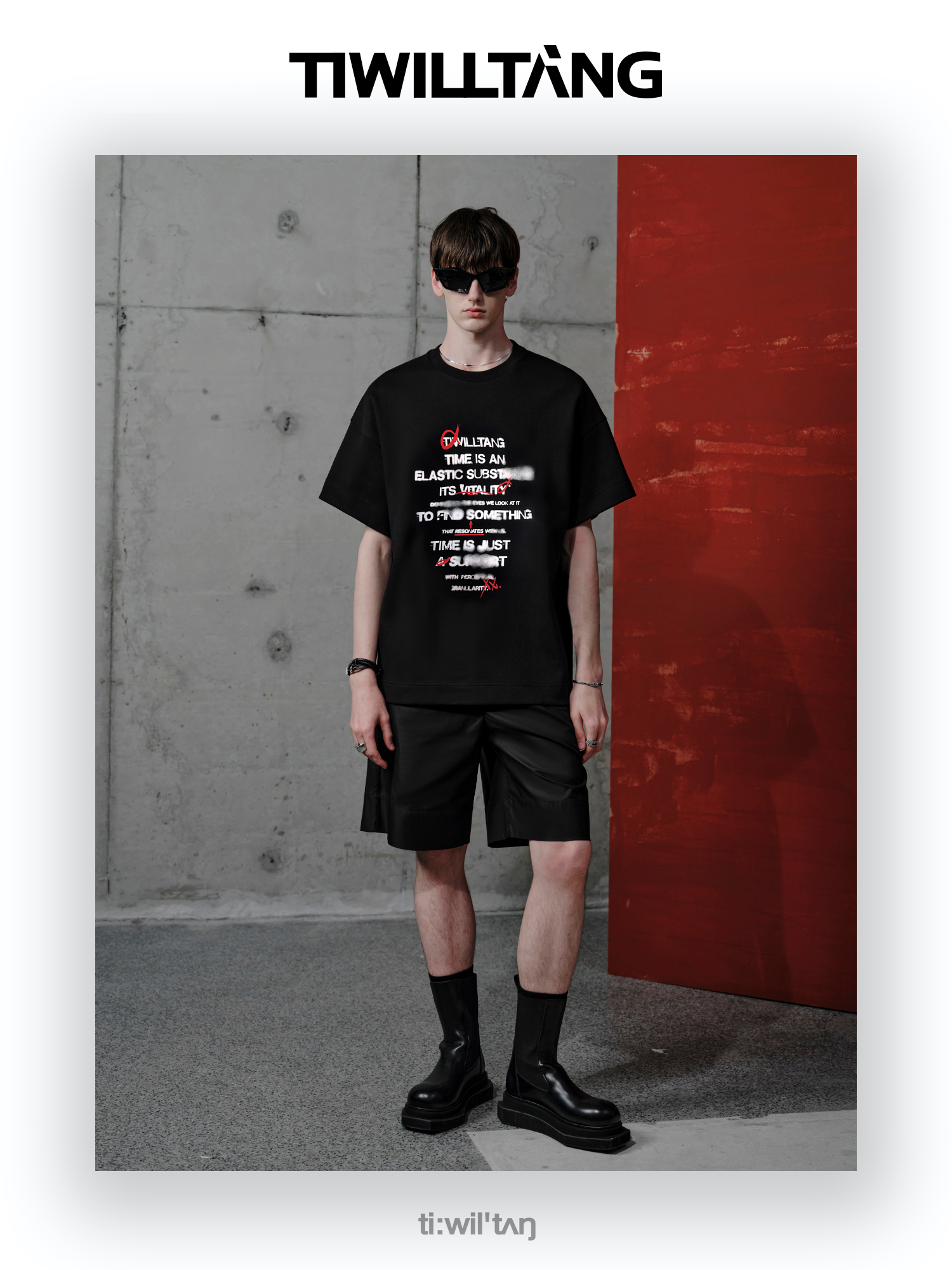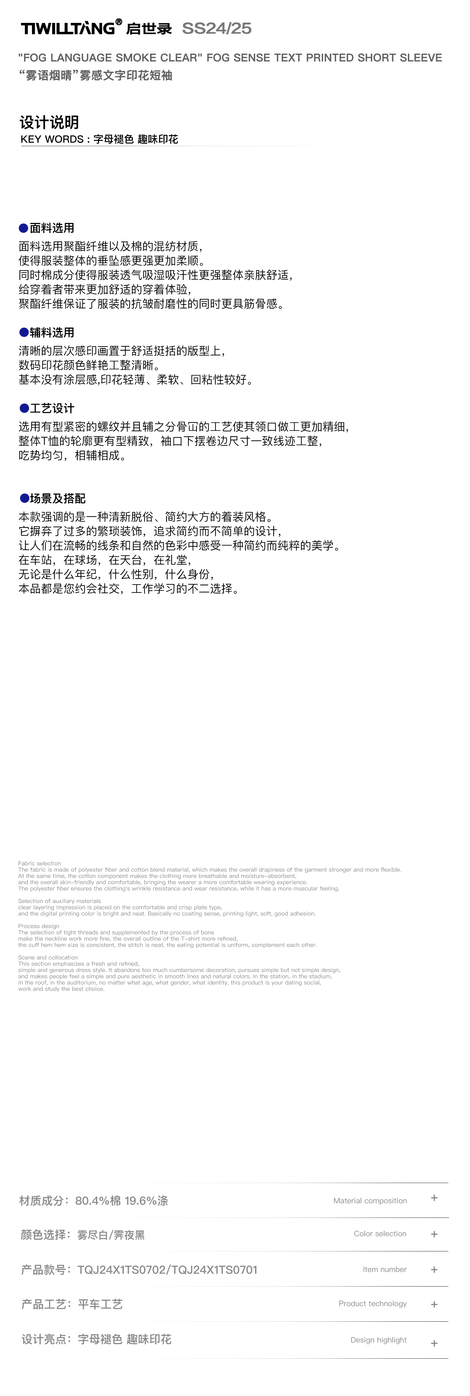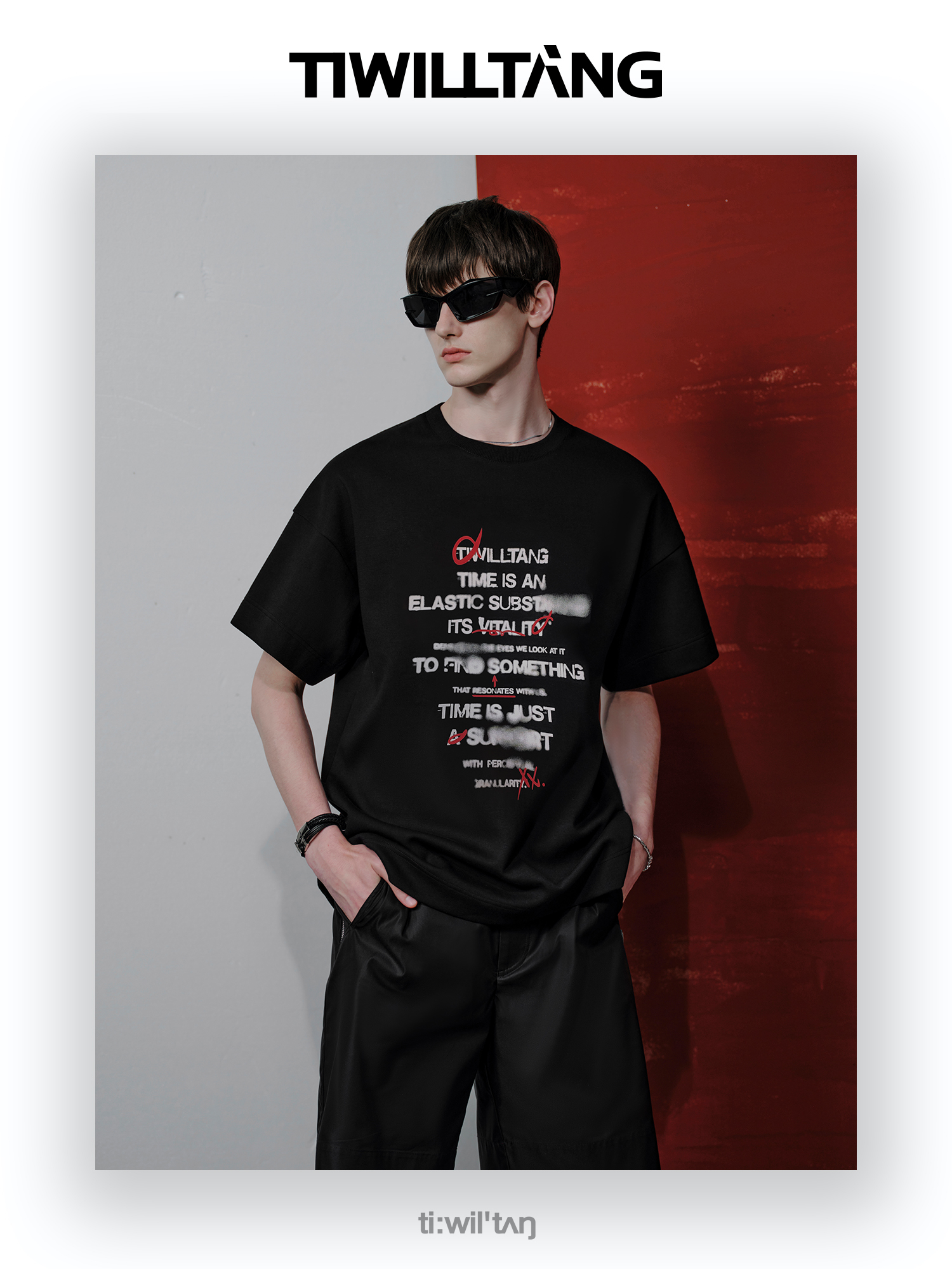 TIWILLTANG启世录“雾语烟晴”雾感文字印花短袖