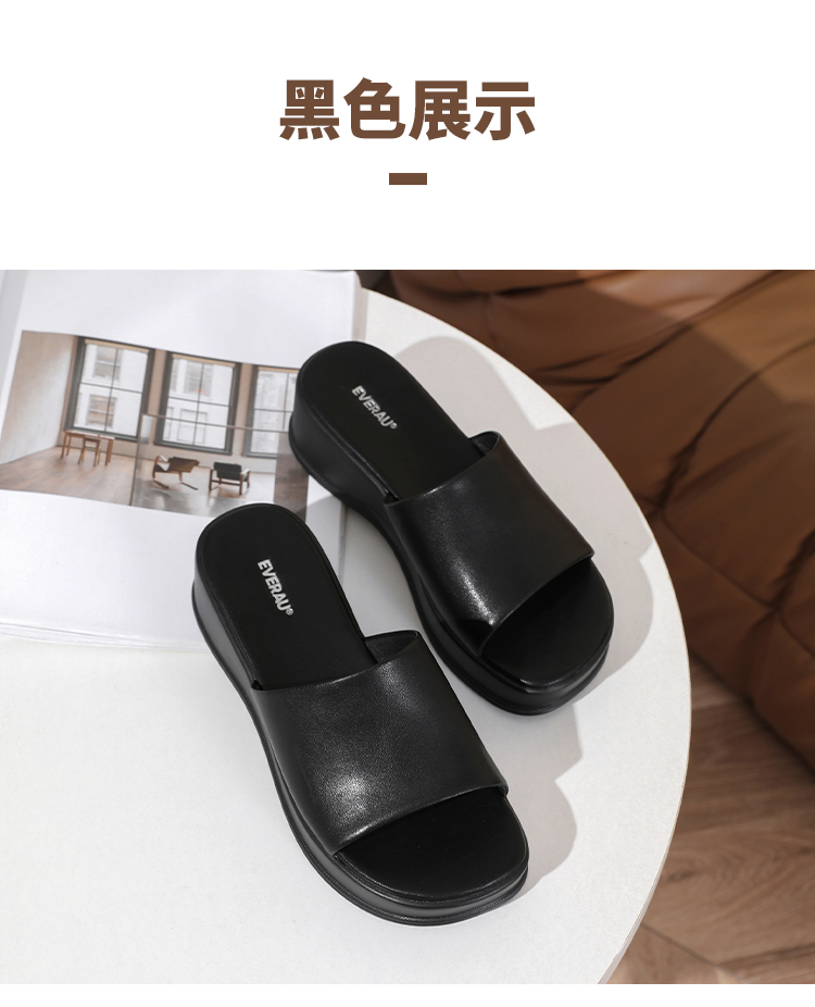 【澳洲品牌】EVERAU拖鞋女外穿夏季新款厚底增高松糕凉拖沙滩一字带EA7037