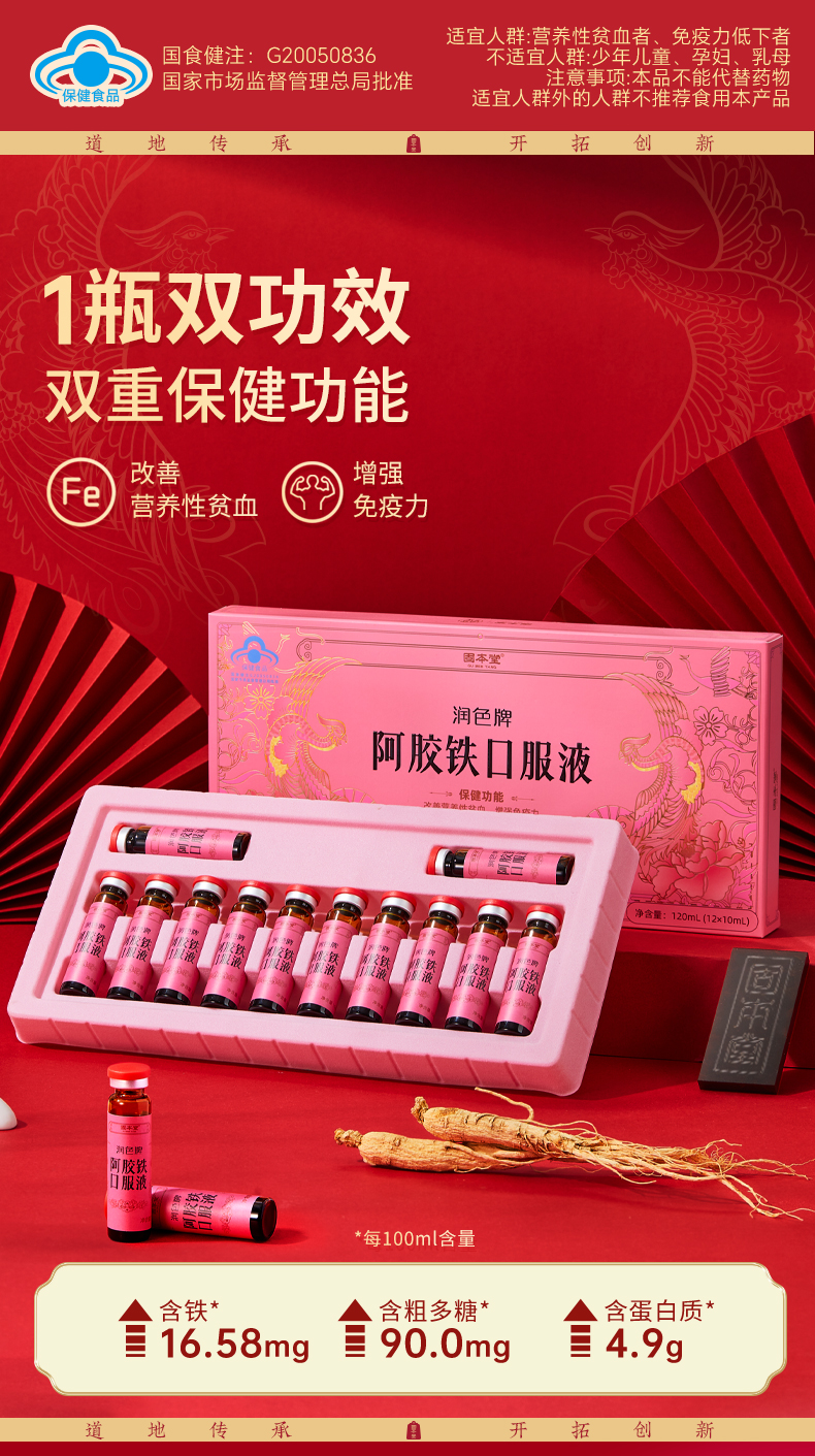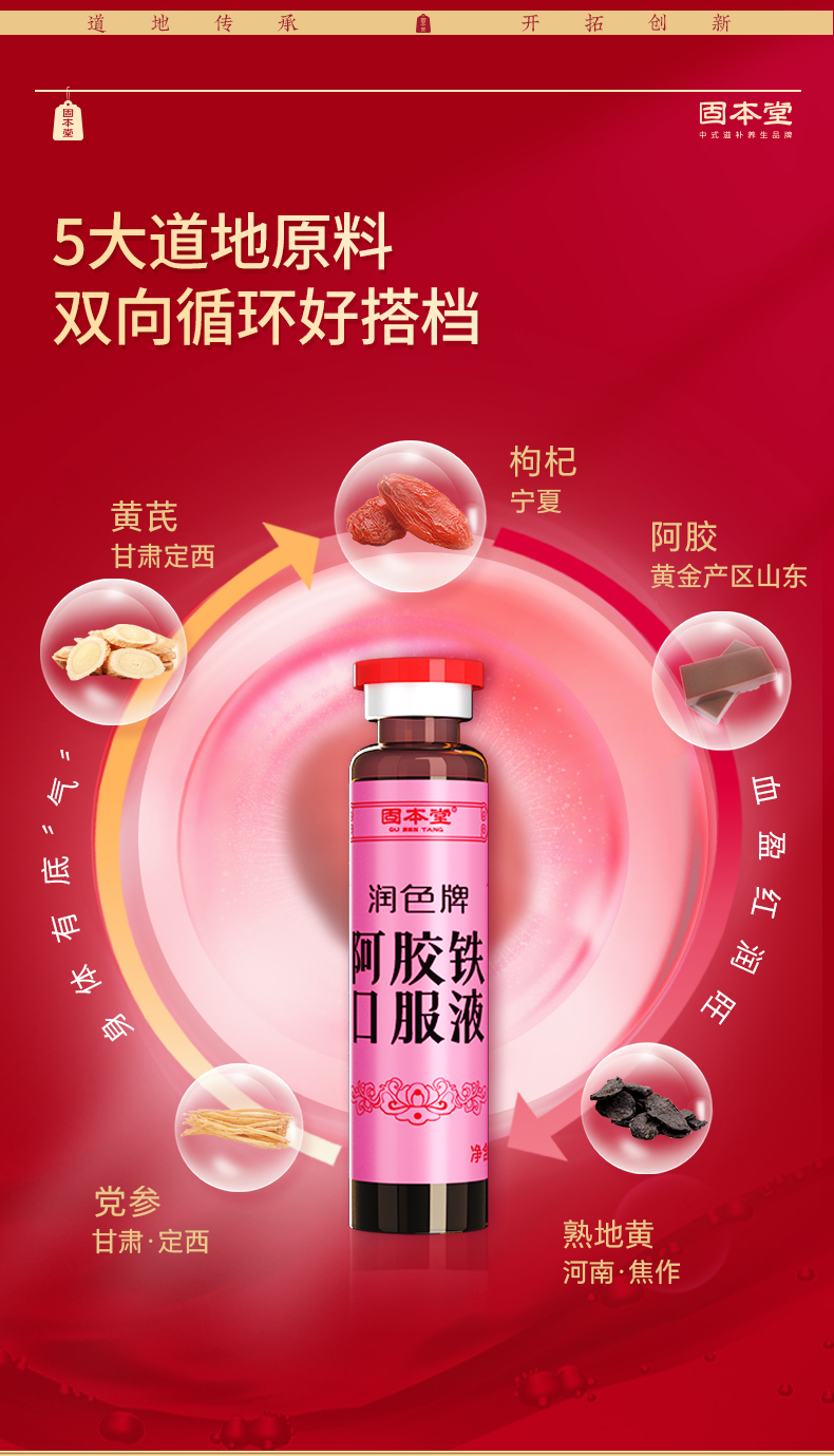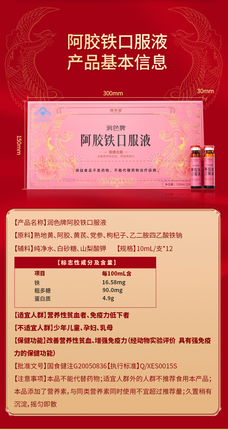 润色牌阿胶铁口服液12支(10ml*12支/盒) 气血不足喝这个 可比老公煮的红糖水 灵多了 【固本堂】
