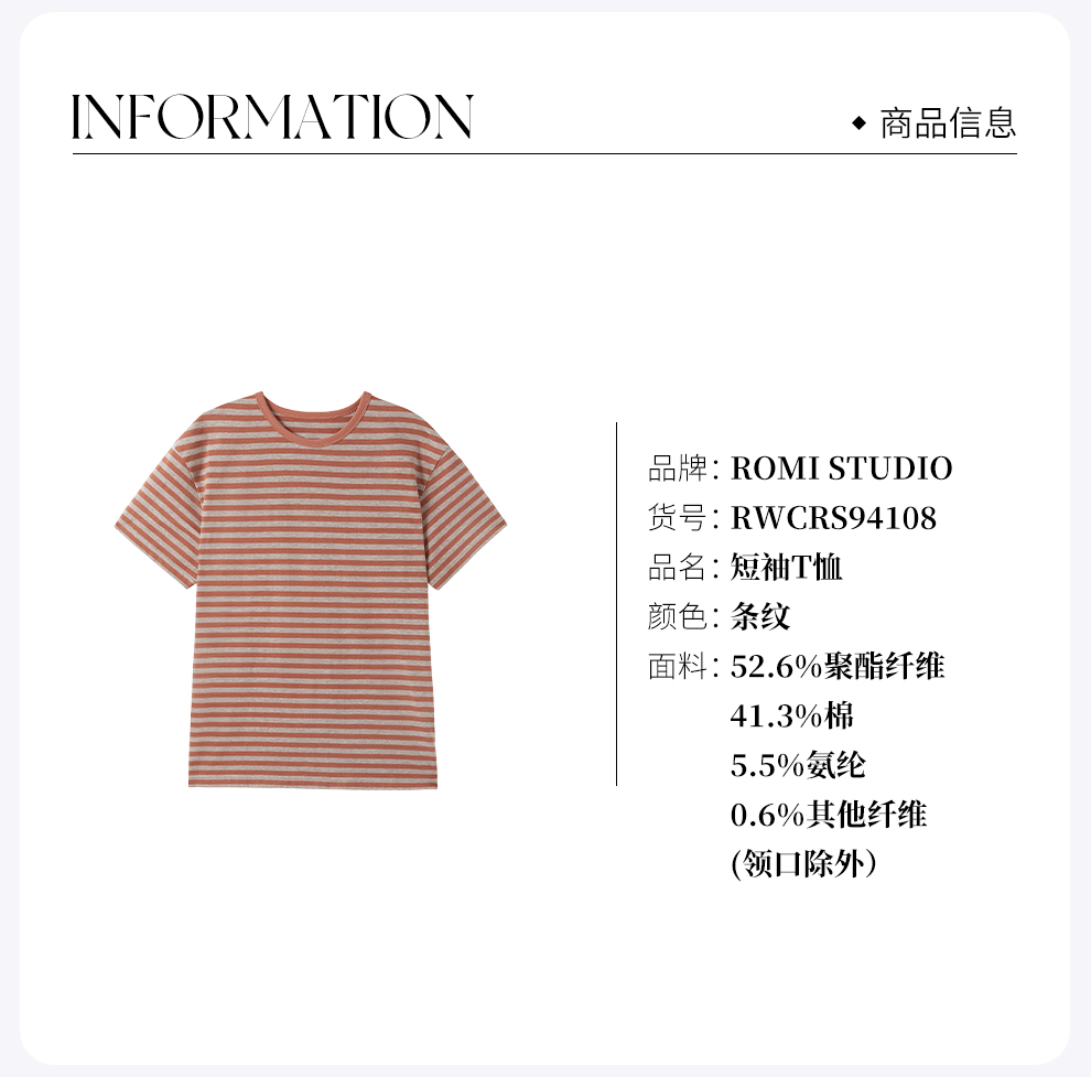 ROMI STUDIO“休闲随性”撞色条纹复古宽松圆领短袖T恤 RWCRS94108