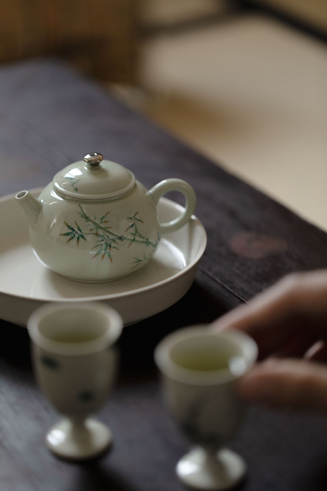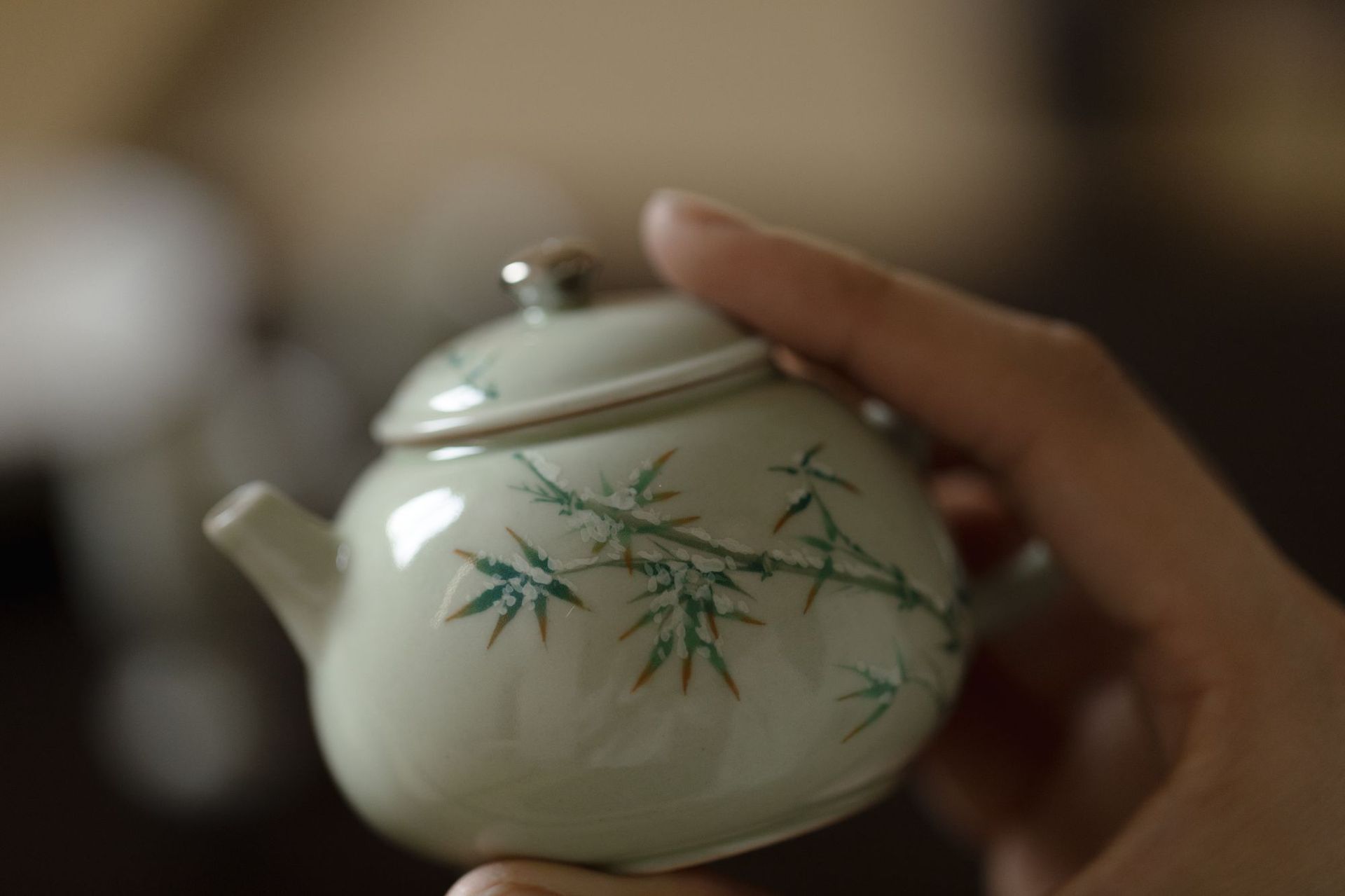 束刻<秘黄釉茶壶>