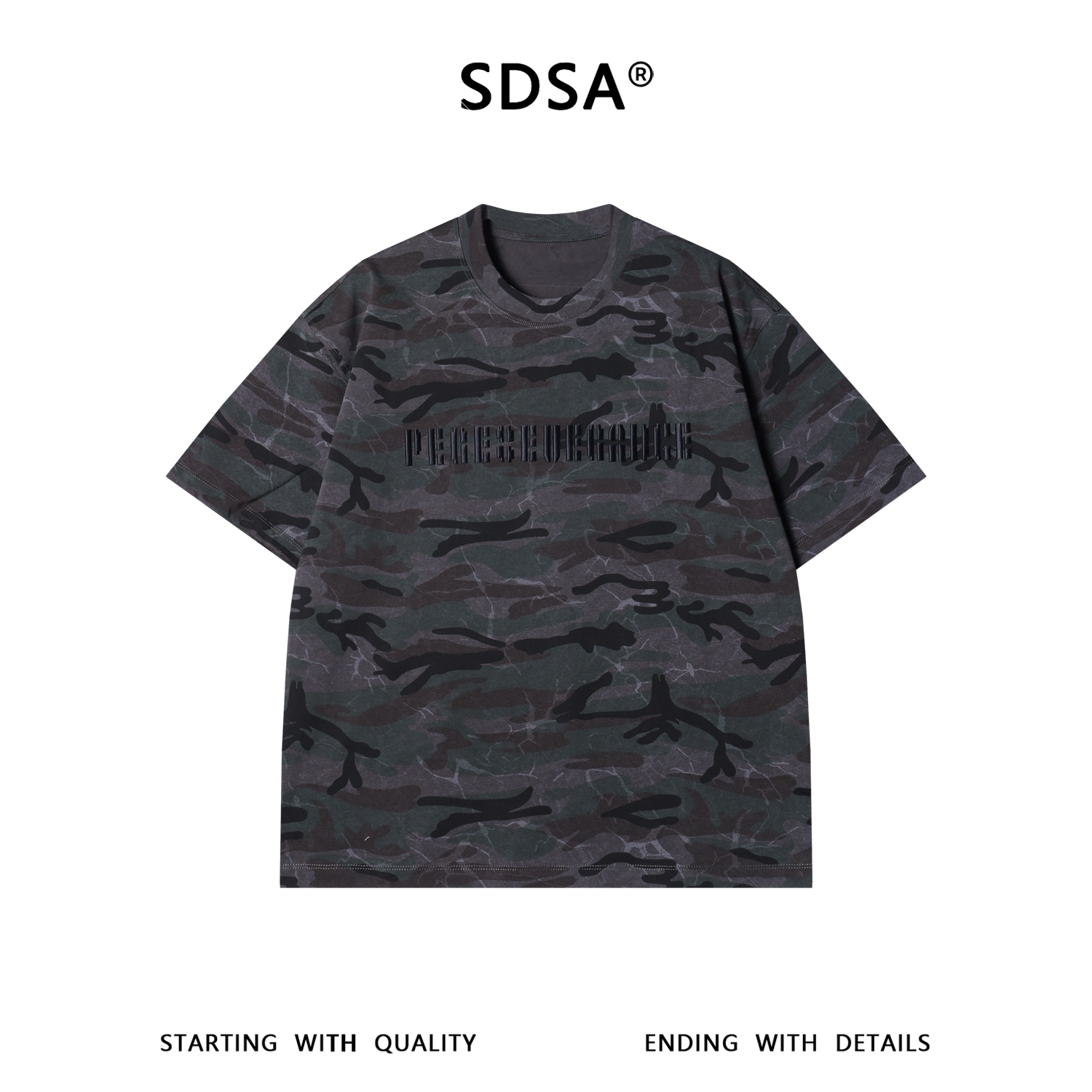 SDSA男装2026新款高贵轻奢美式迷彩刺绣字母圆领短袖T恤百搭时尚