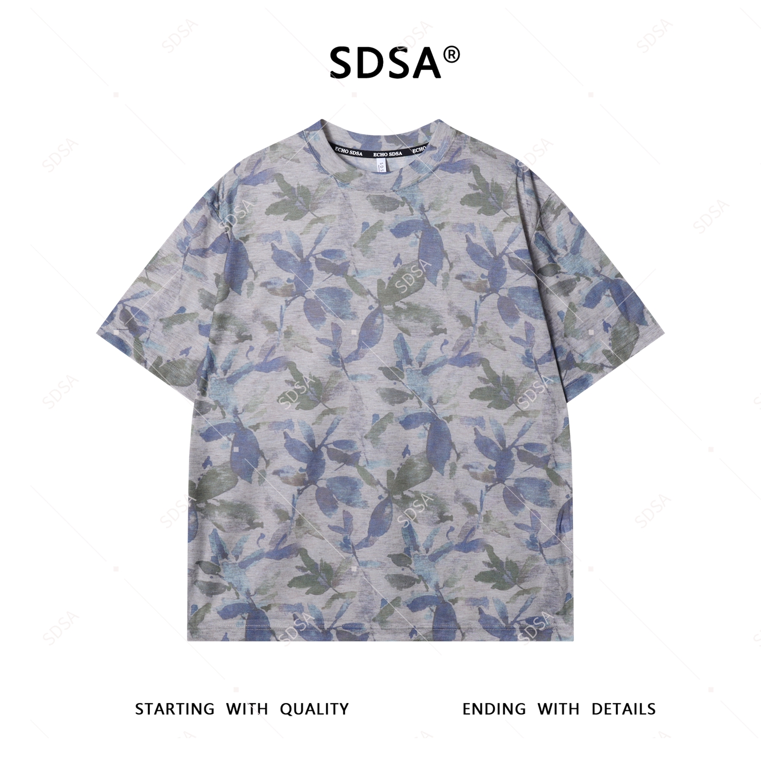 T4222SDSA夏季新款男士痞帅水墨撞色花卉图案短袖T恤百搭圆领时尚上衣