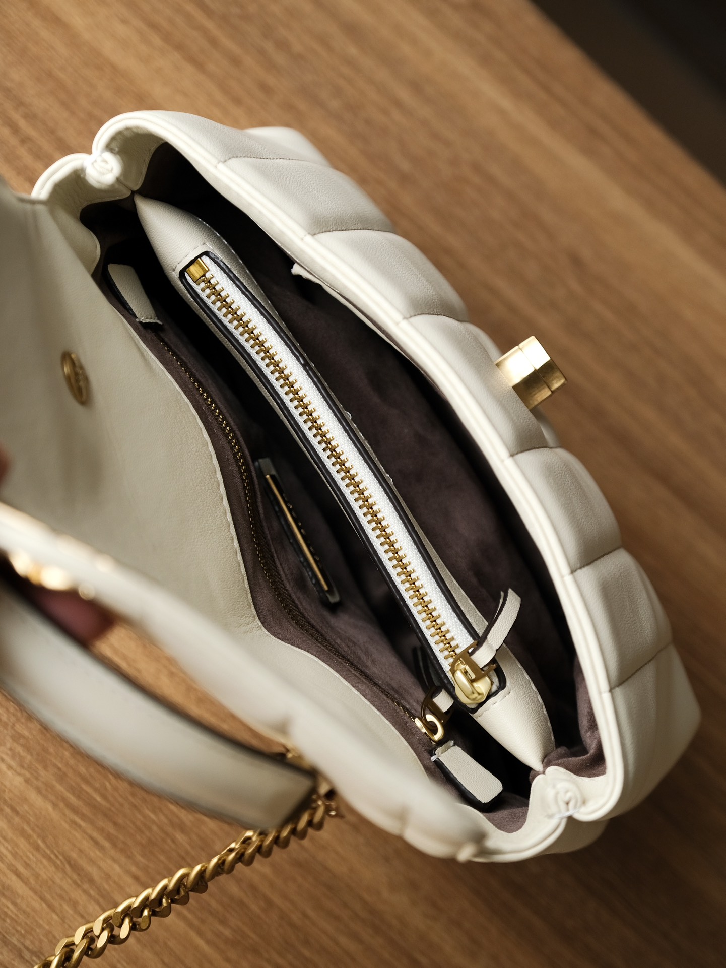 采用双T型图案旋锁封口,设计别致,手感超级柔软 轻便,多种背法 空间容量大,有肩带可以斜挎单肩手柄可以手拎(可搭配丝巾),容量适合日常所需