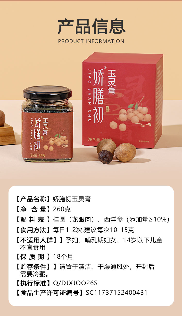 娇膳初玉灵膏桂圆滋补气血西洋参玉灵膏气色安神助眠官方旗舰店
