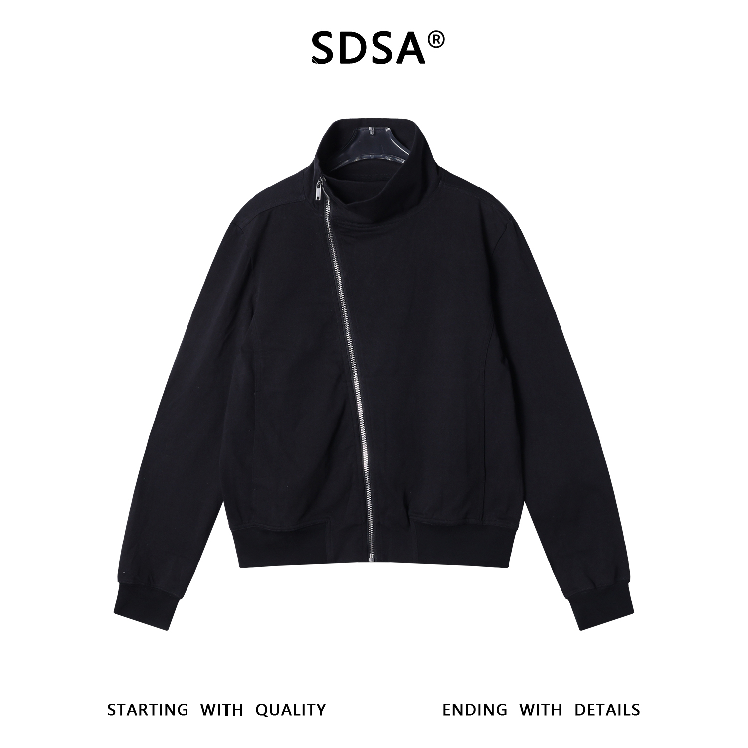 SDSA秋冬新款痞帅男装韩版简约纯色斜拉链立领卫衣百搭时尚上衣